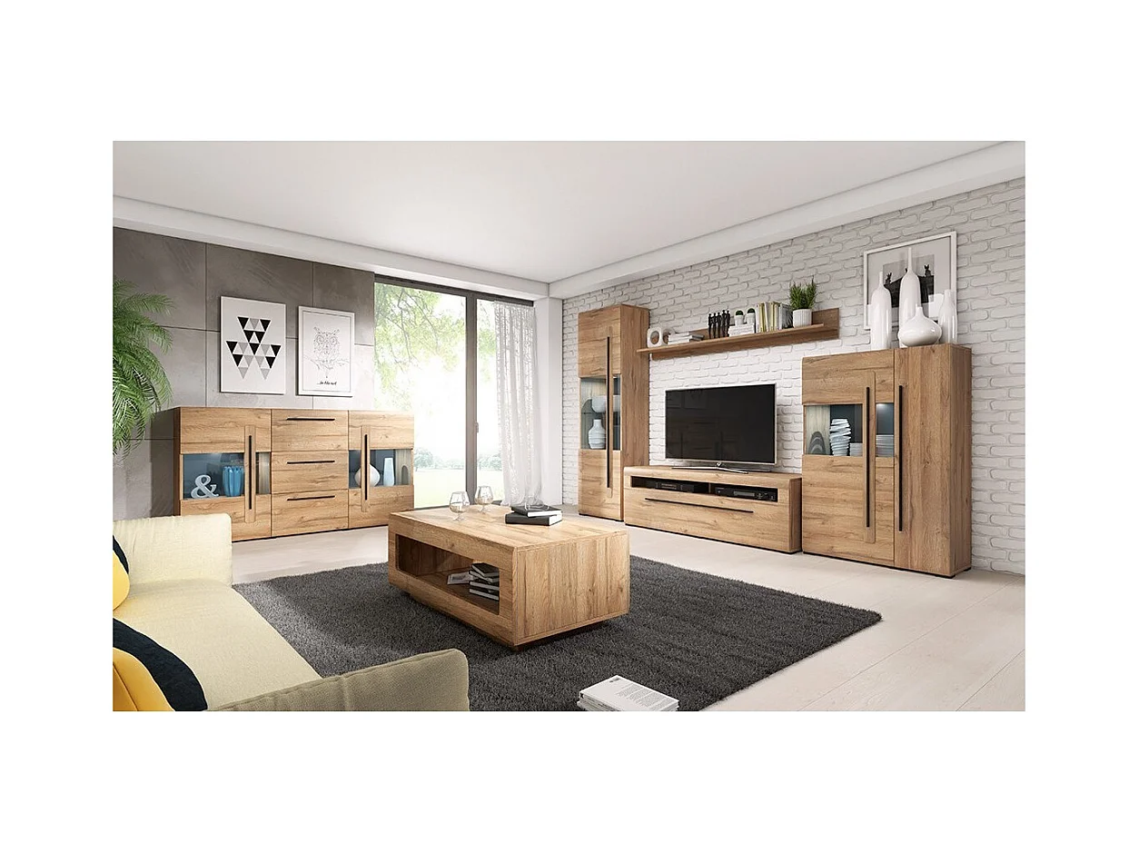 Buffet 180 cm na cor carvalho e branco brilhante com vários compartimentos de armazenamento coleção SINATRA.