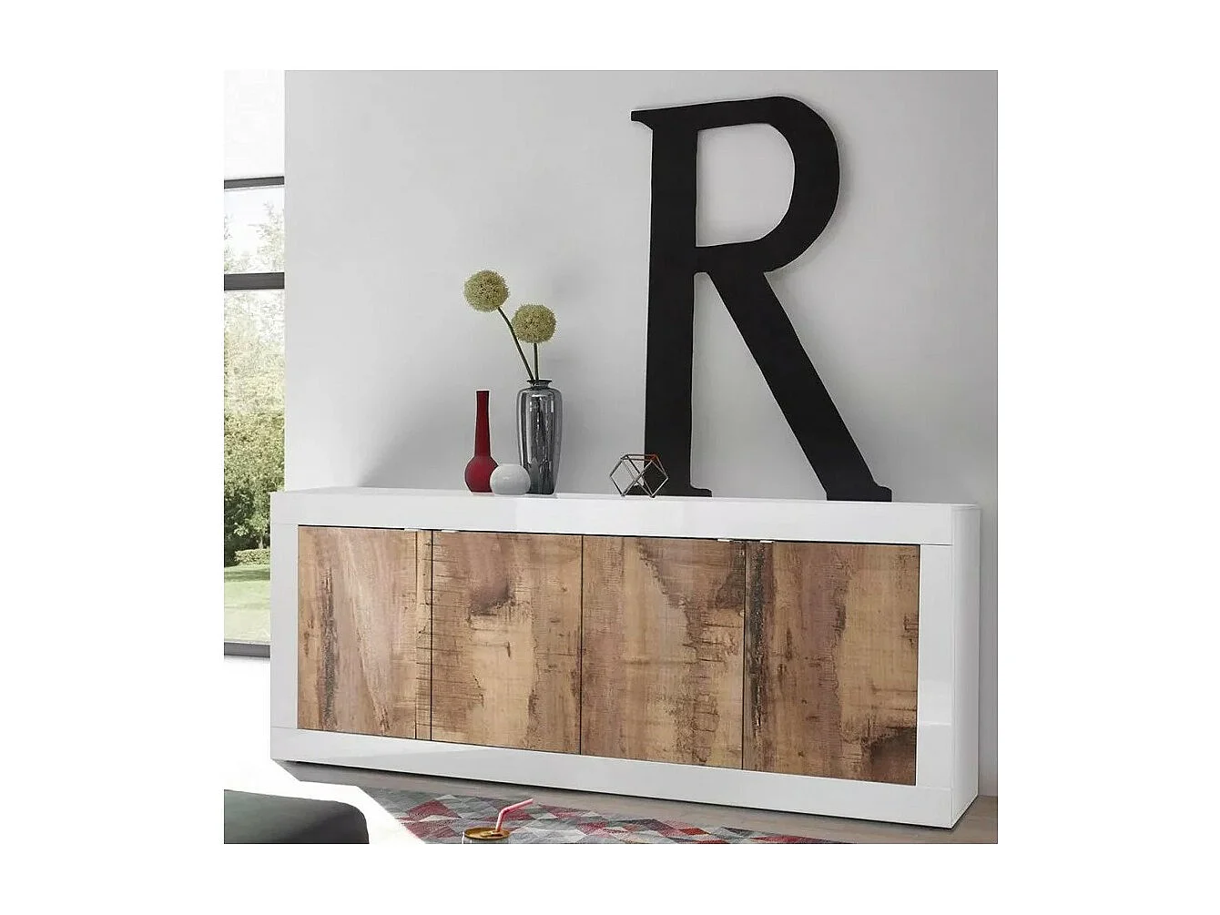 Buffet 2 portas e 2 gavetas, coleção CISA, cor branco laqueado brilhante e carvalho claro.