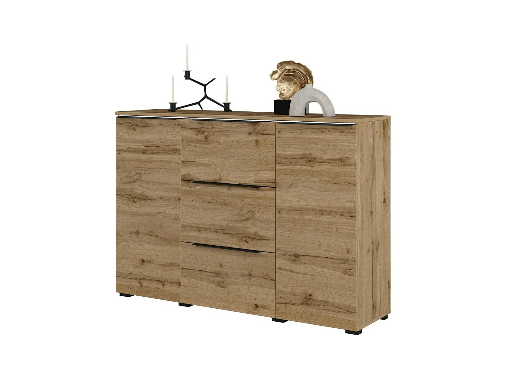 Buffet ALICE coloris chêne wotan – 2 portes, 3 tiroirs