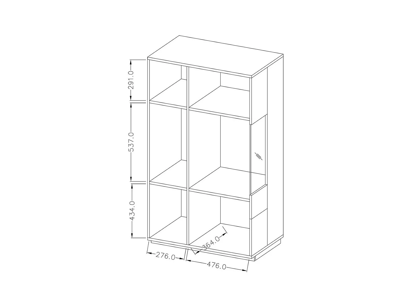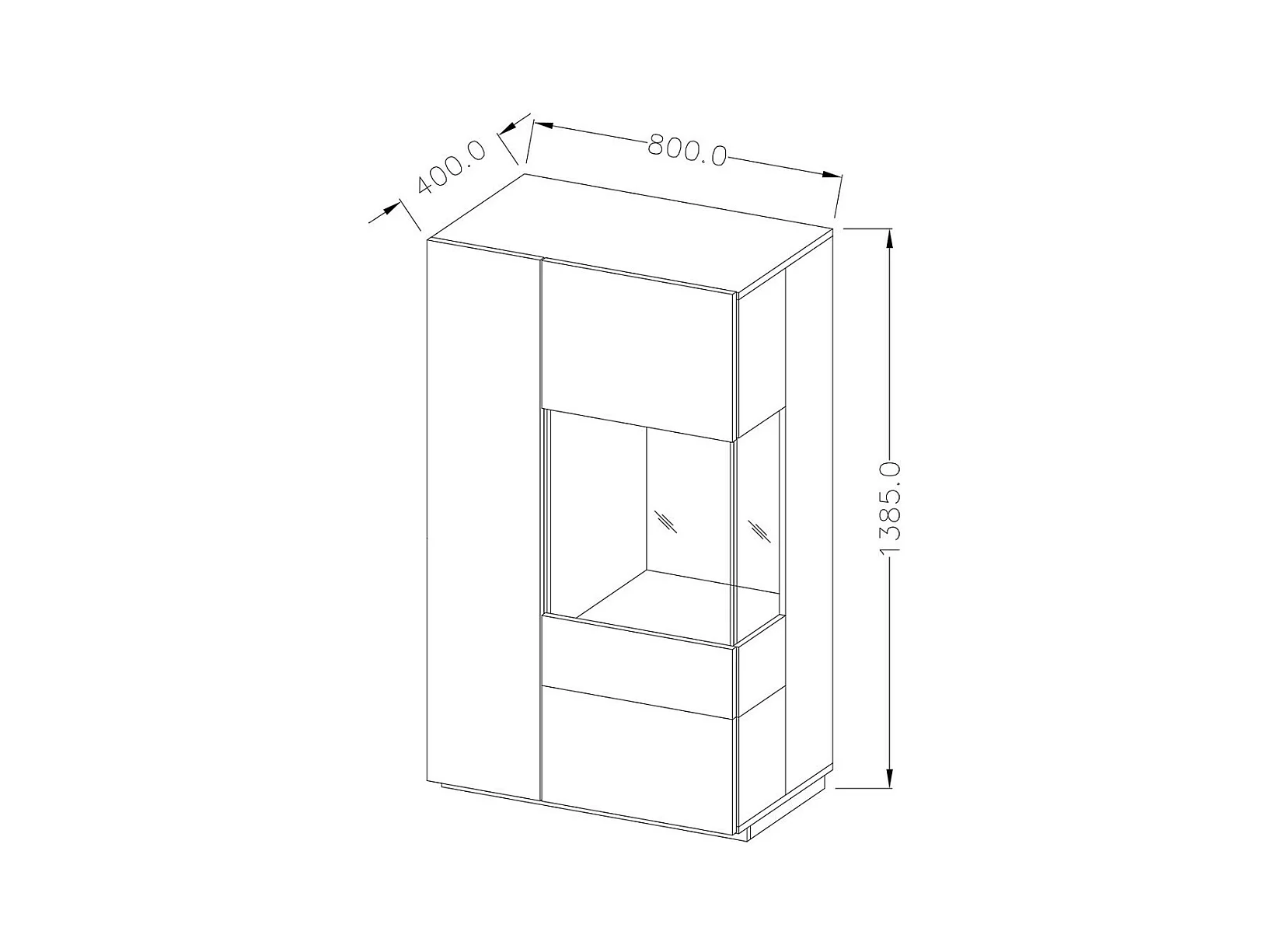 Buffet alto coleção KILES com duas portas. Cor cinza antracite e carvalho. Porta de vidro à direita.