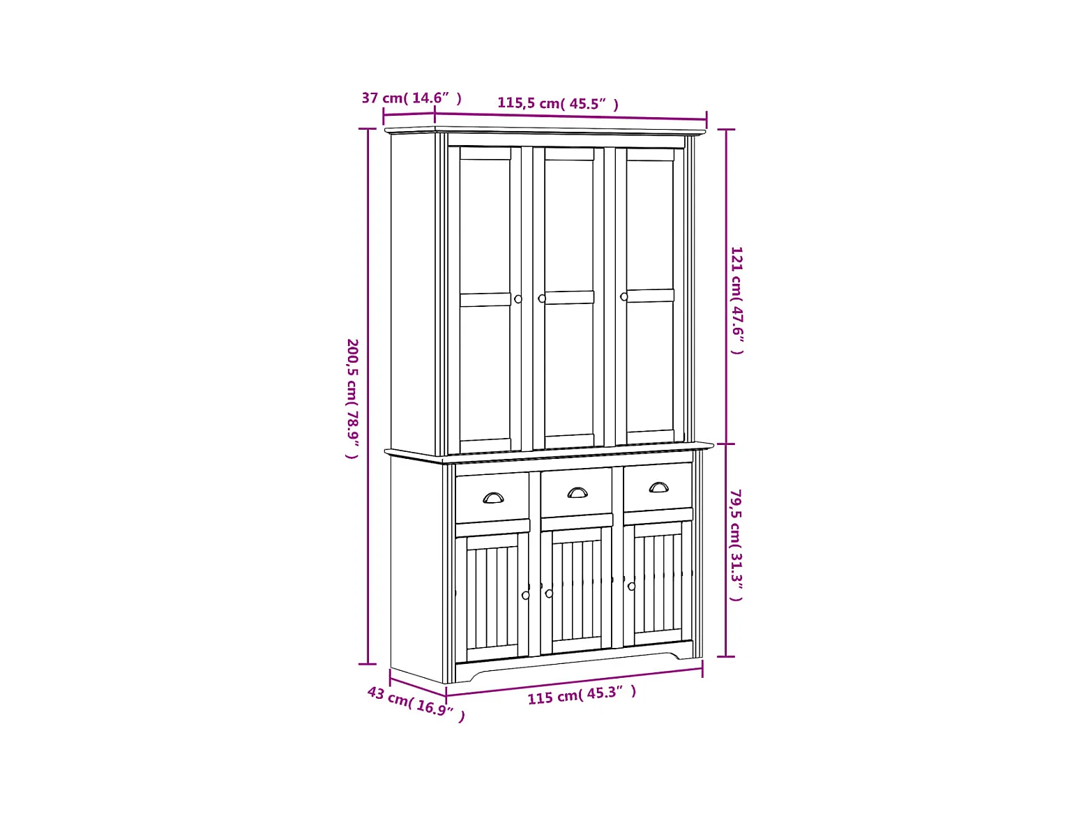 Buffet aparador cômoda armário organizador de unidade cozinha sala BODO e 115,5 x 43 x 200,5 cm madeira maciça de pinho marrom 02_0030801