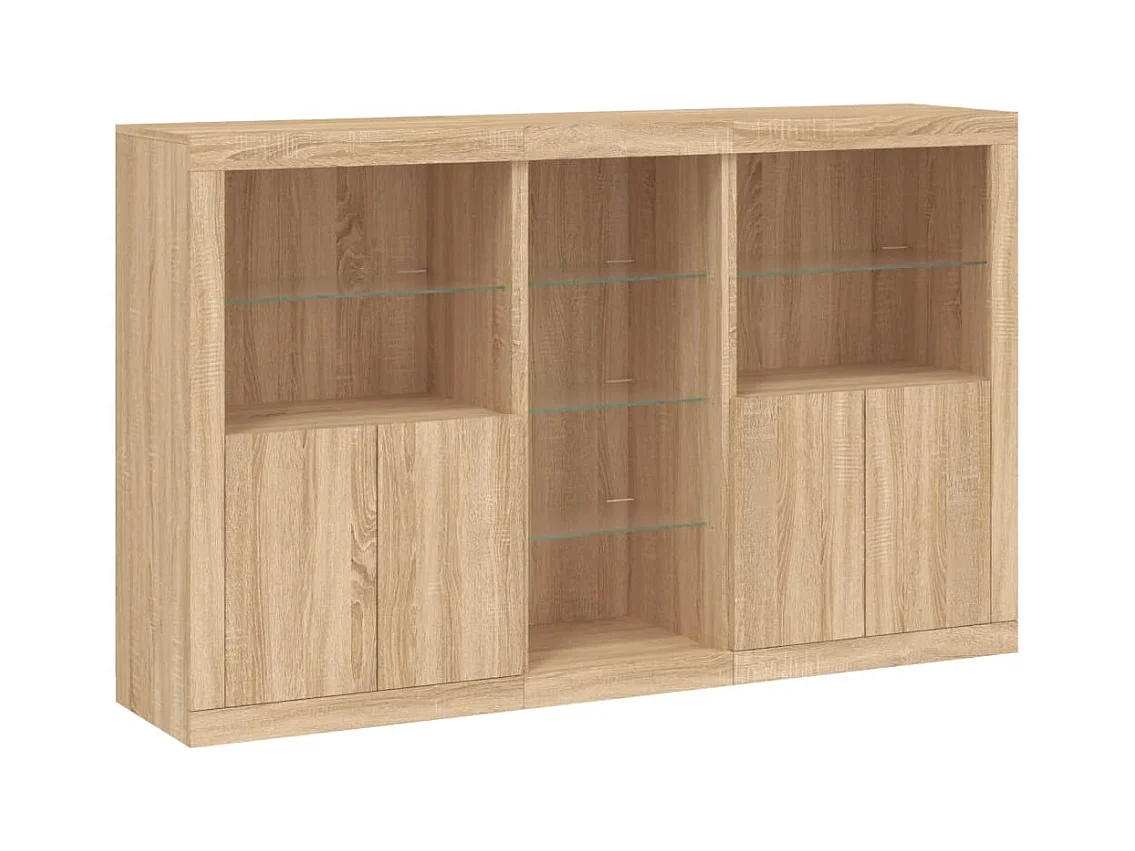 Aparador Aparador Cômoda Armário Unidade de armazenamento Organizador Cozinha Sala de estar com luzes LED 3 peças Madeira projetada marrom 02_0037211