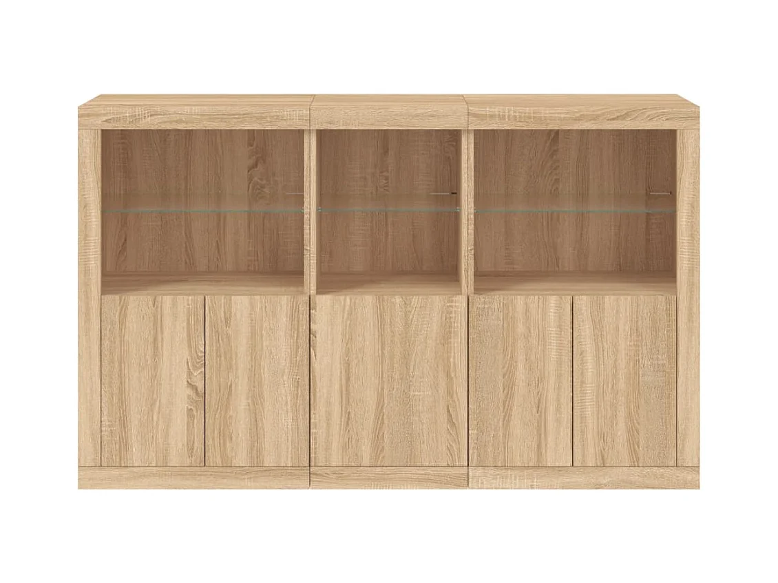 Aparador Aparador Cômoda Armário Unidade de armazenamento Organizador Cozinha Sala de estar com luzes LED 3 peças Madeira projetada marrom 02_0037211
