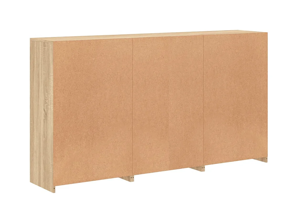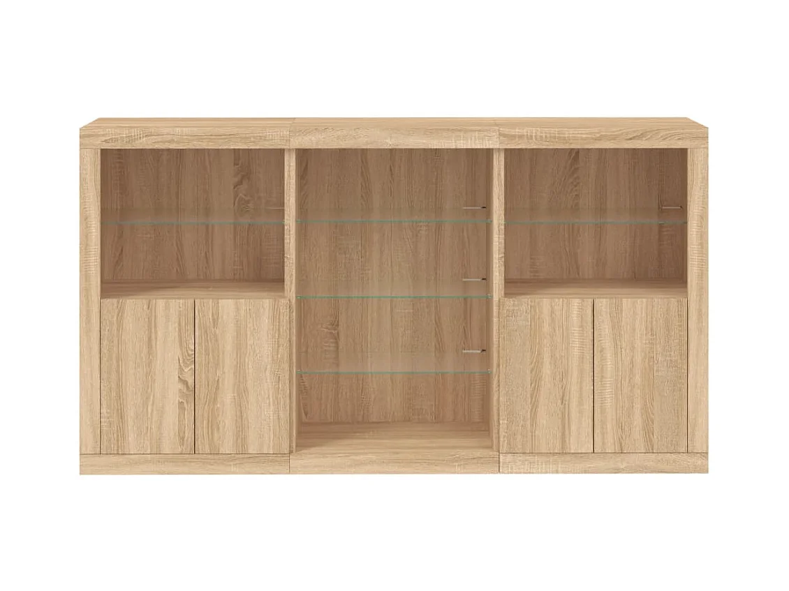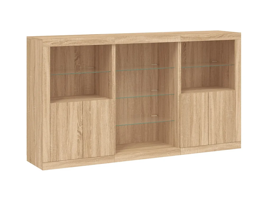 Aparador Aparador Cômoda Armário Unidade de armazenamento Organizador Cozinha Sala de estar com luzes LED 3 peças Madeira projetada marrom 02_0037212
