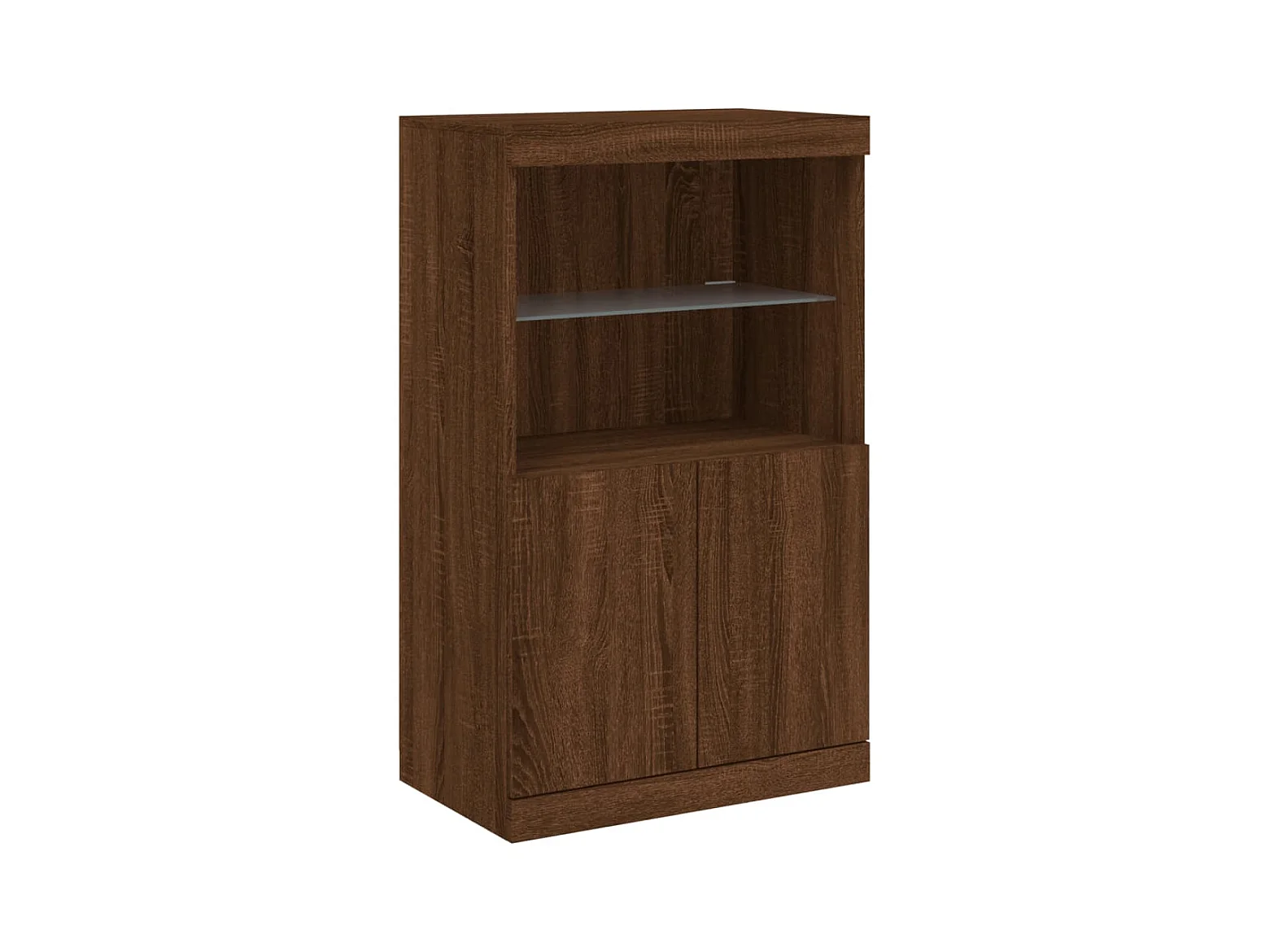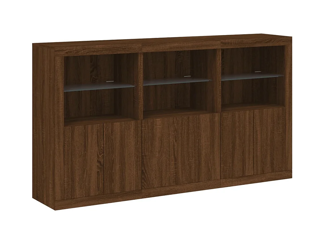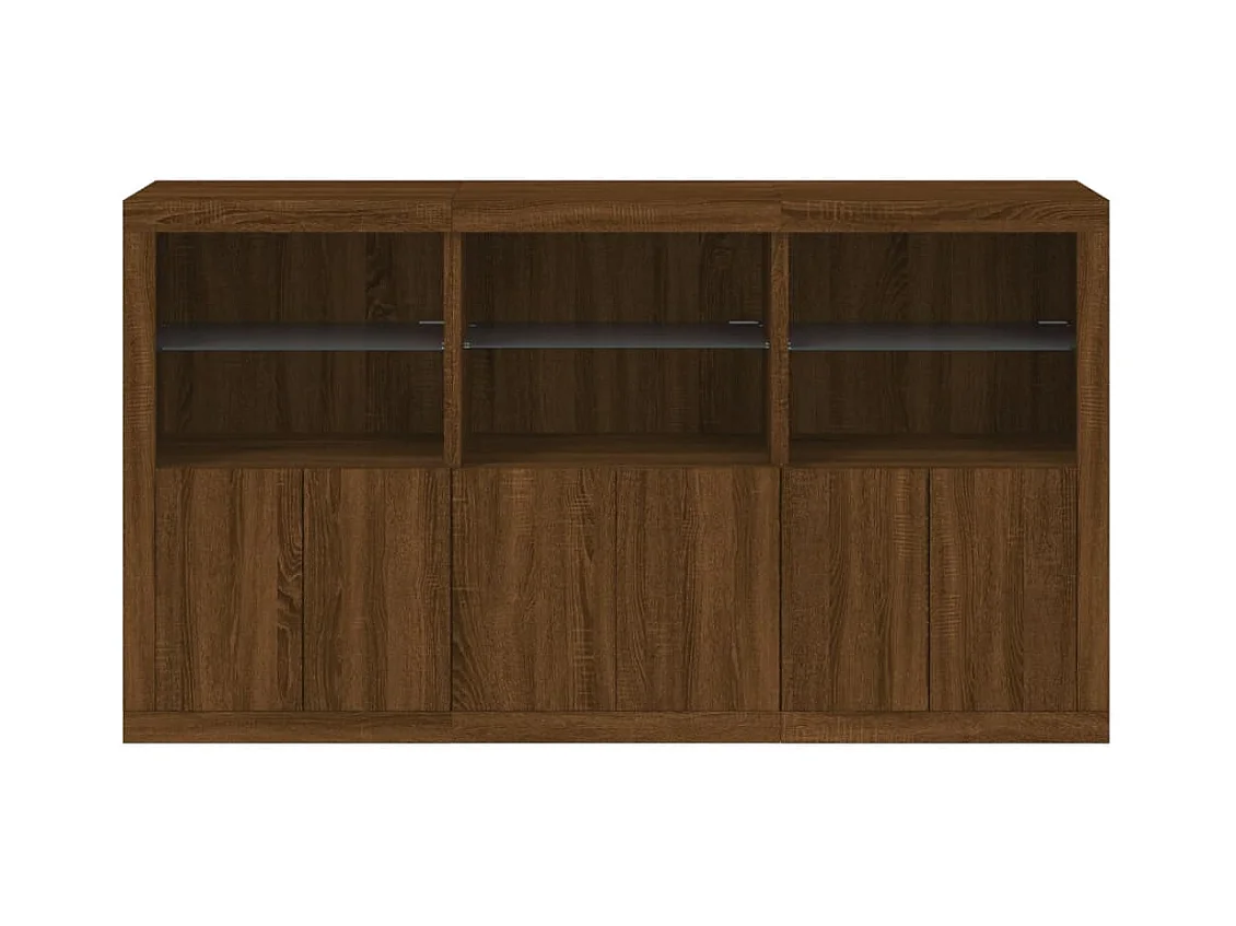 Aparador Aparador Cômoda Armário Unidade de armazenamento Organizador Cozinha Sala de estar com luzes LED 3 peças Madeira projetada marrom 02_0037211