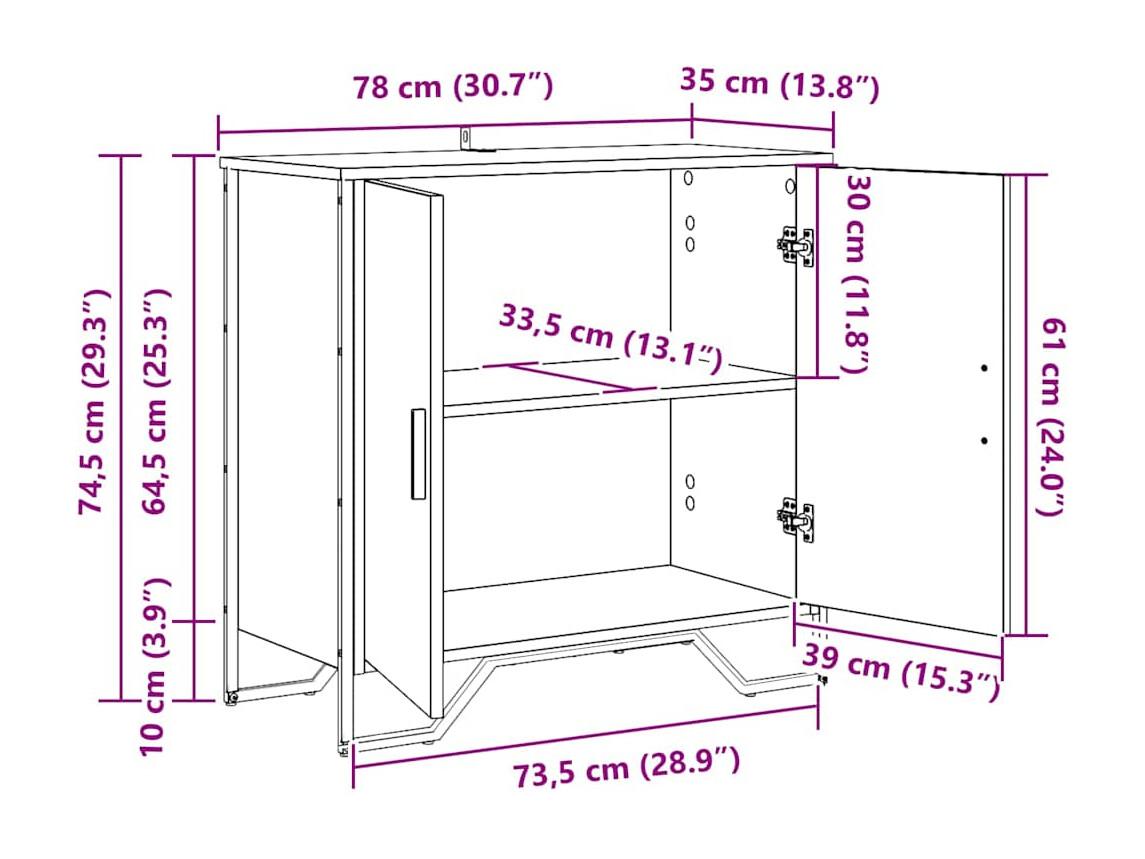 Aparador 78x35,5x74,5 cm derivados de madeira carvalho sonoma