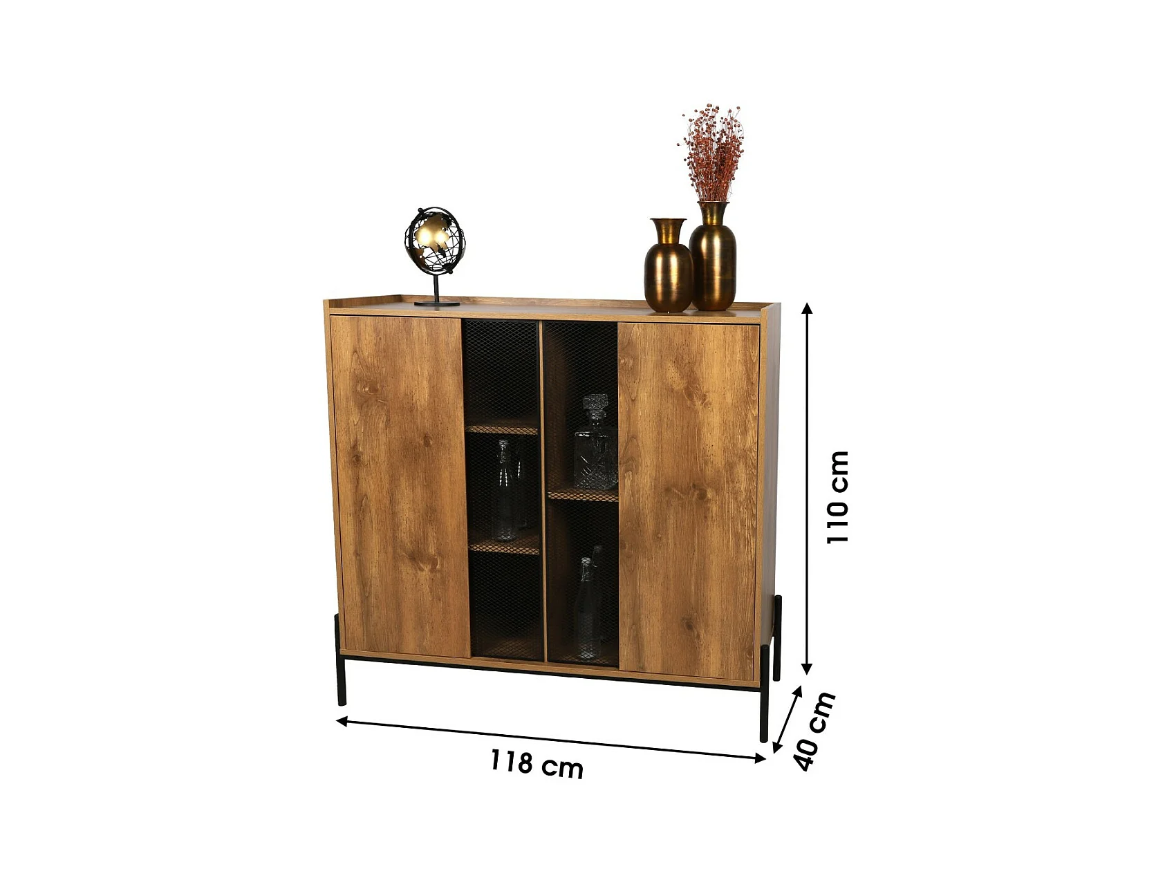 Buffet com 2 portas de tela e 5 nichos estilo rústico dimensões 118x40x110cm