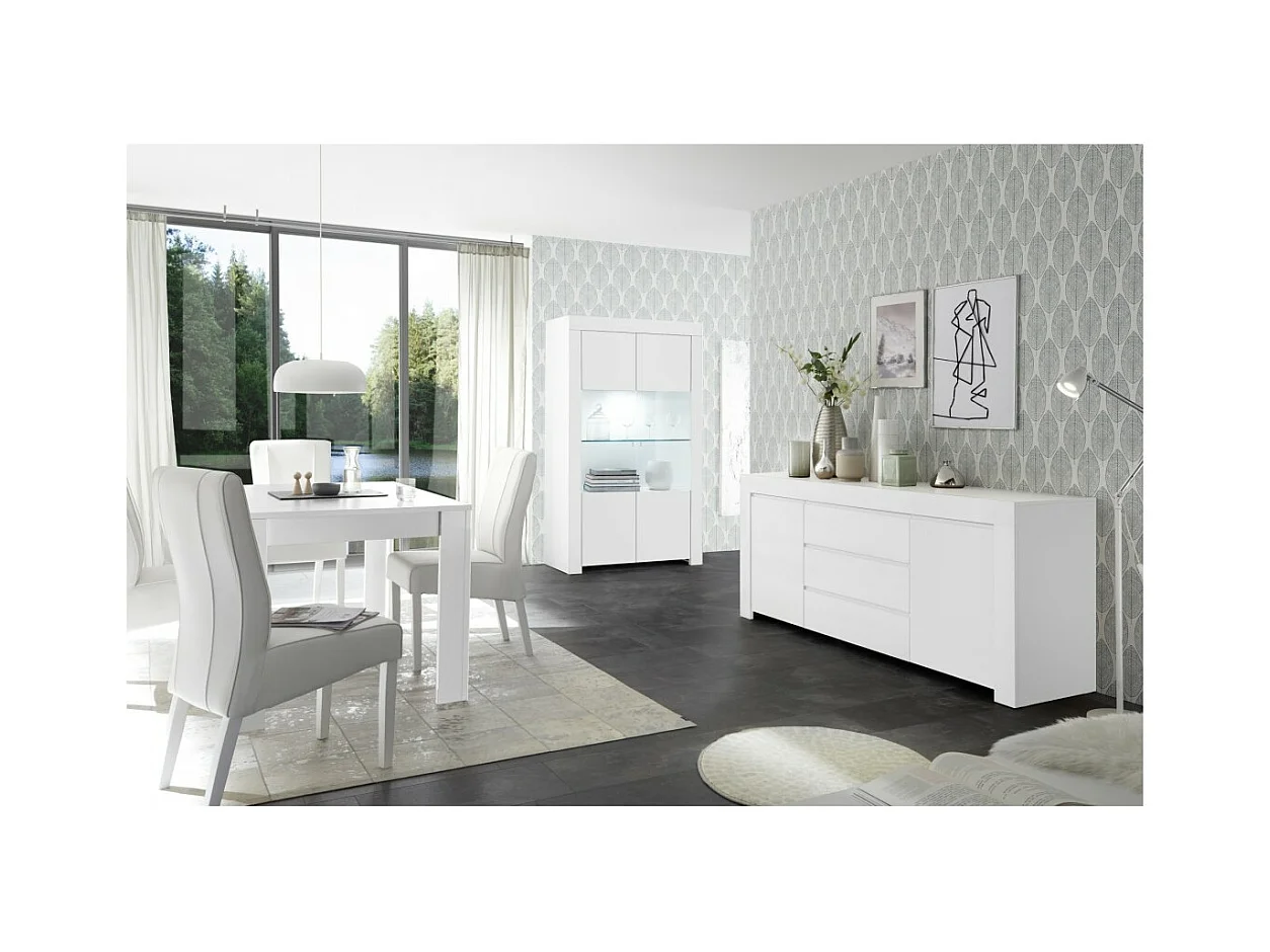 Buffet com 2 portas de vidro, coleção ZEFIR, na cor branco fosco, perfeito para a sua sala de jantar.