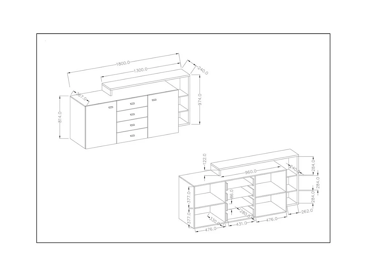 Buffet 180 cm na cor carvalho e branco brilhante com vários compartimentos de armazenamento coleção SINATRA.