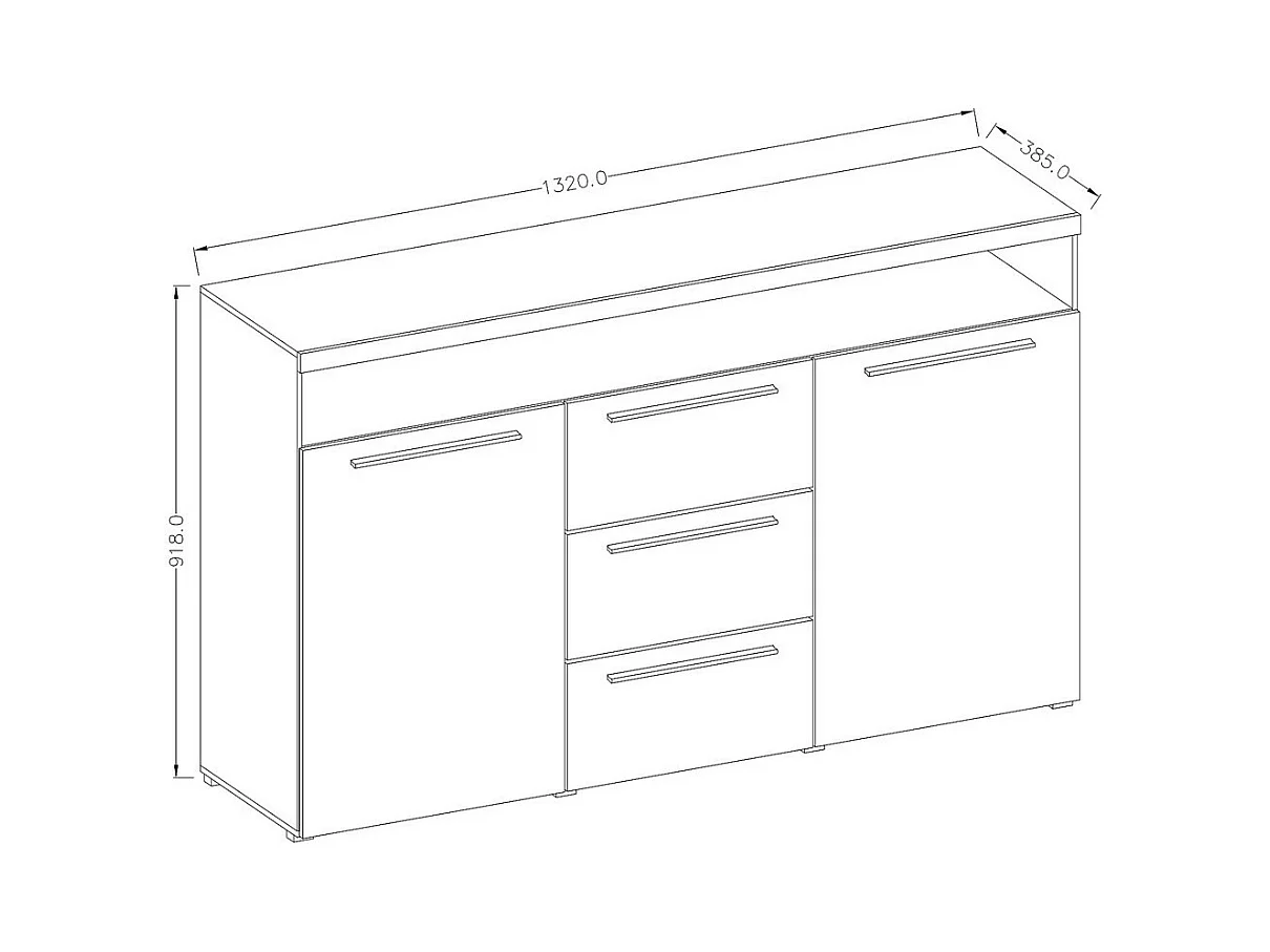 Buffet 120cm coleção EVA com 3 portas. Cor branco e carvalho.