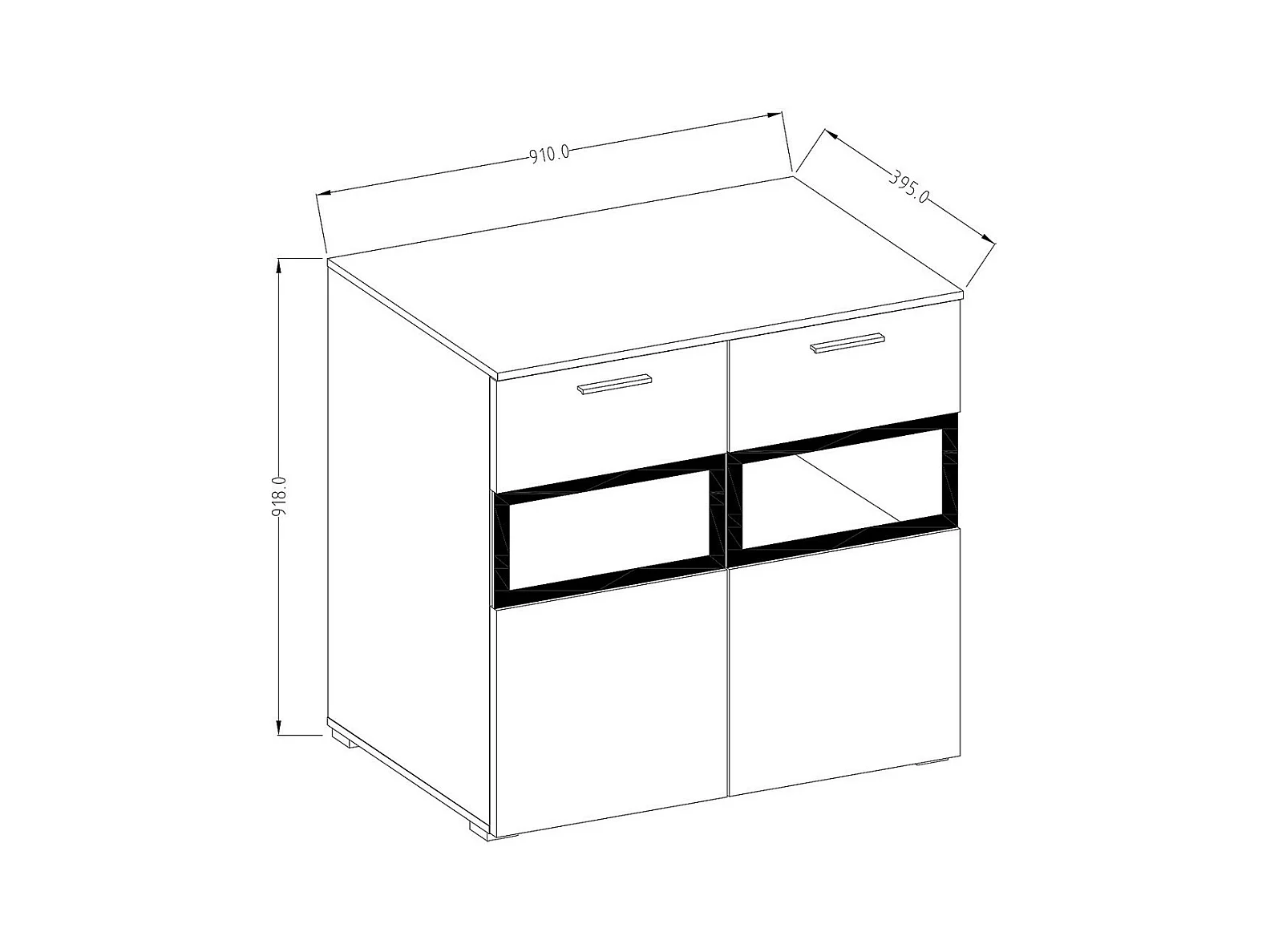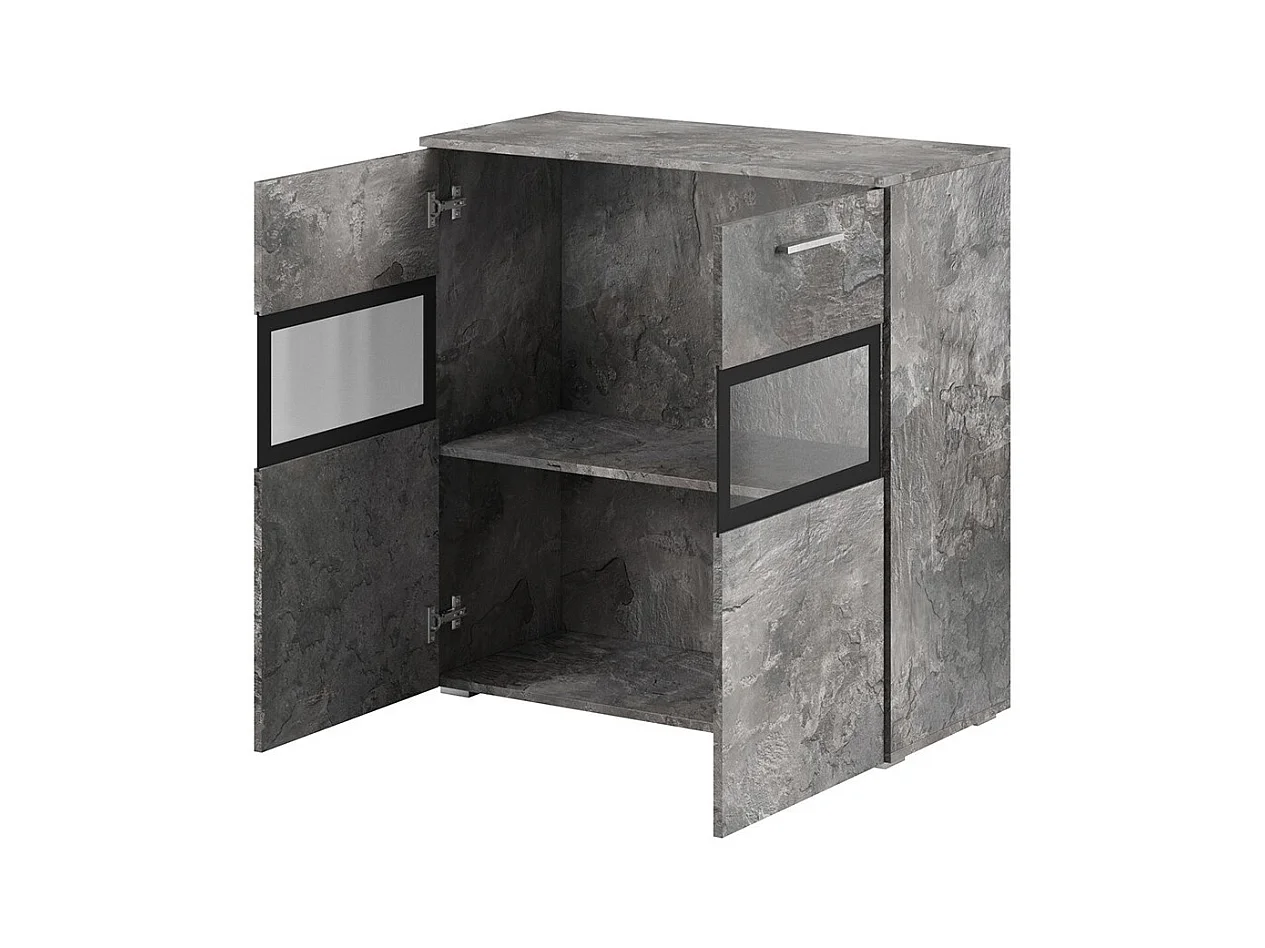 Buffet 90cm para sala com 2 portas de vidro cor efeito ardósia coleção CONNOR