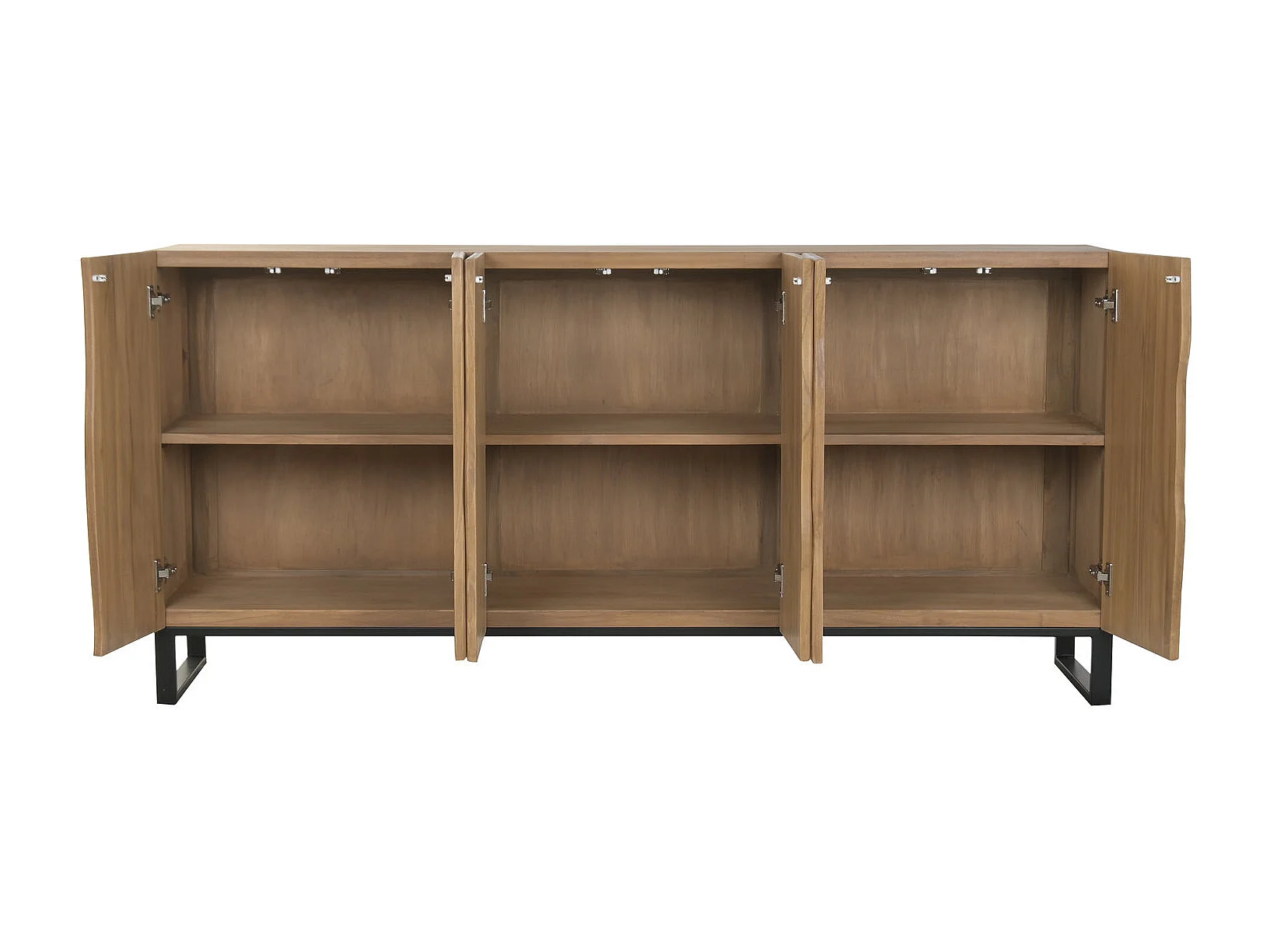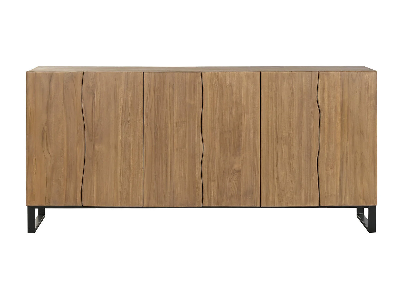 Buffet de metal com acabamento em teca, 180 x 40 x 85 mm, cor natural.
