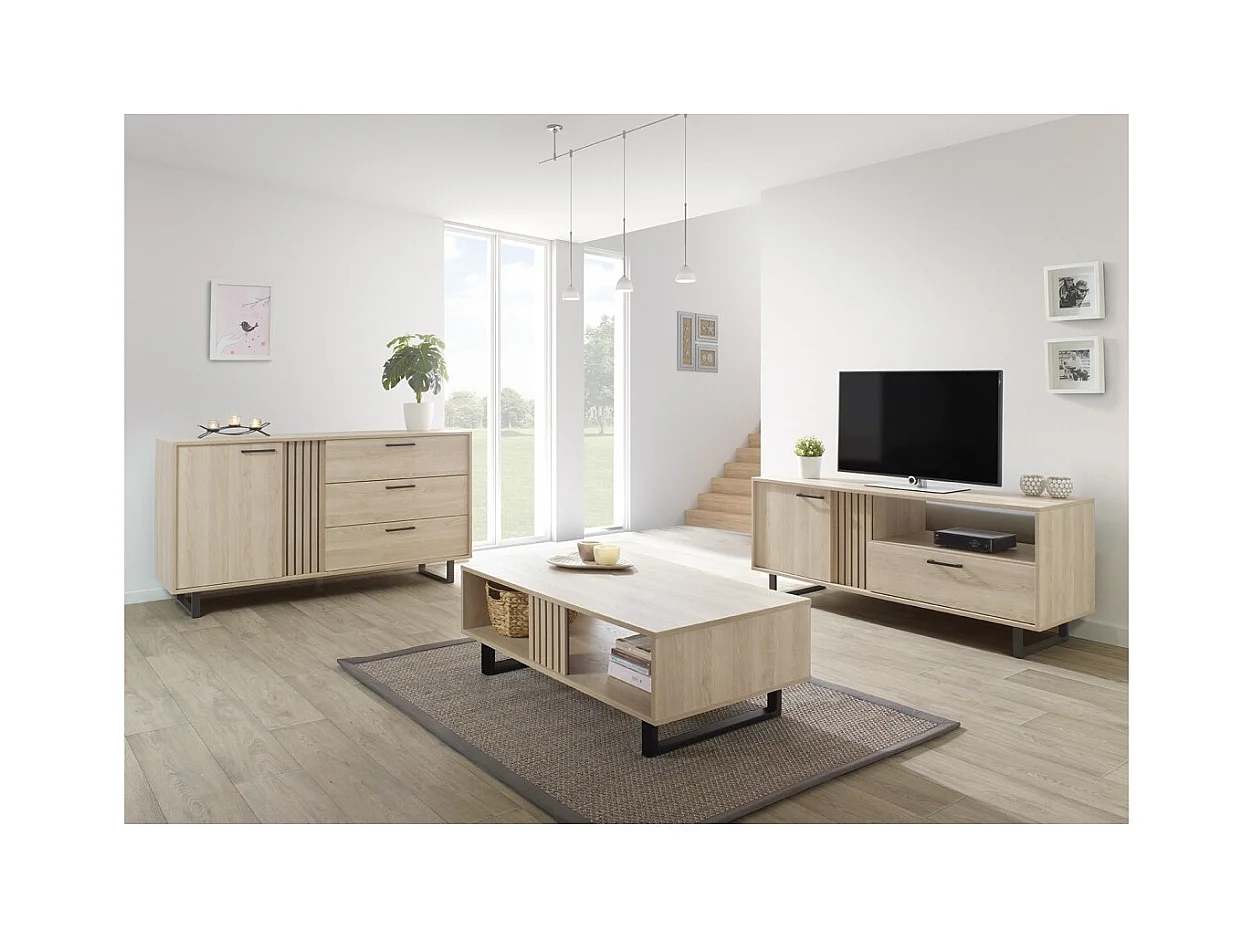 Buffet 3 portas, coleção ZEFIR, cor carvalho claro, perfeito para sua sala de estar.