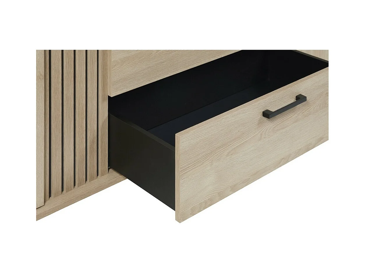 Buffet 220cm coleção DARWIN. Cor pinheiro e preto. 4 portas e 3 gavetas.