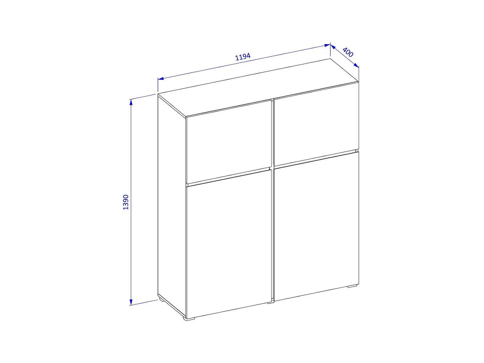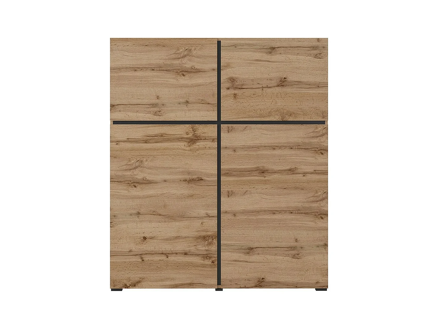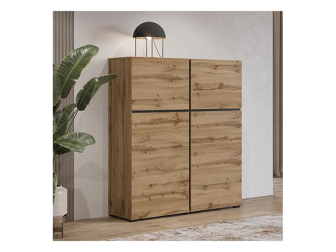 Buffet haut coloris chêne et noir L120xH140xP40 collection HAVANA. Bahut haut design avec 4 portes.