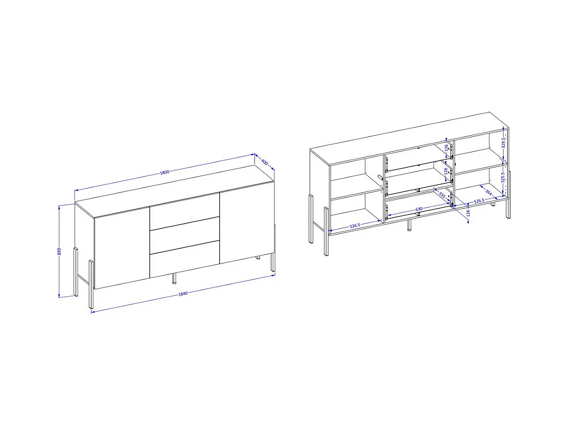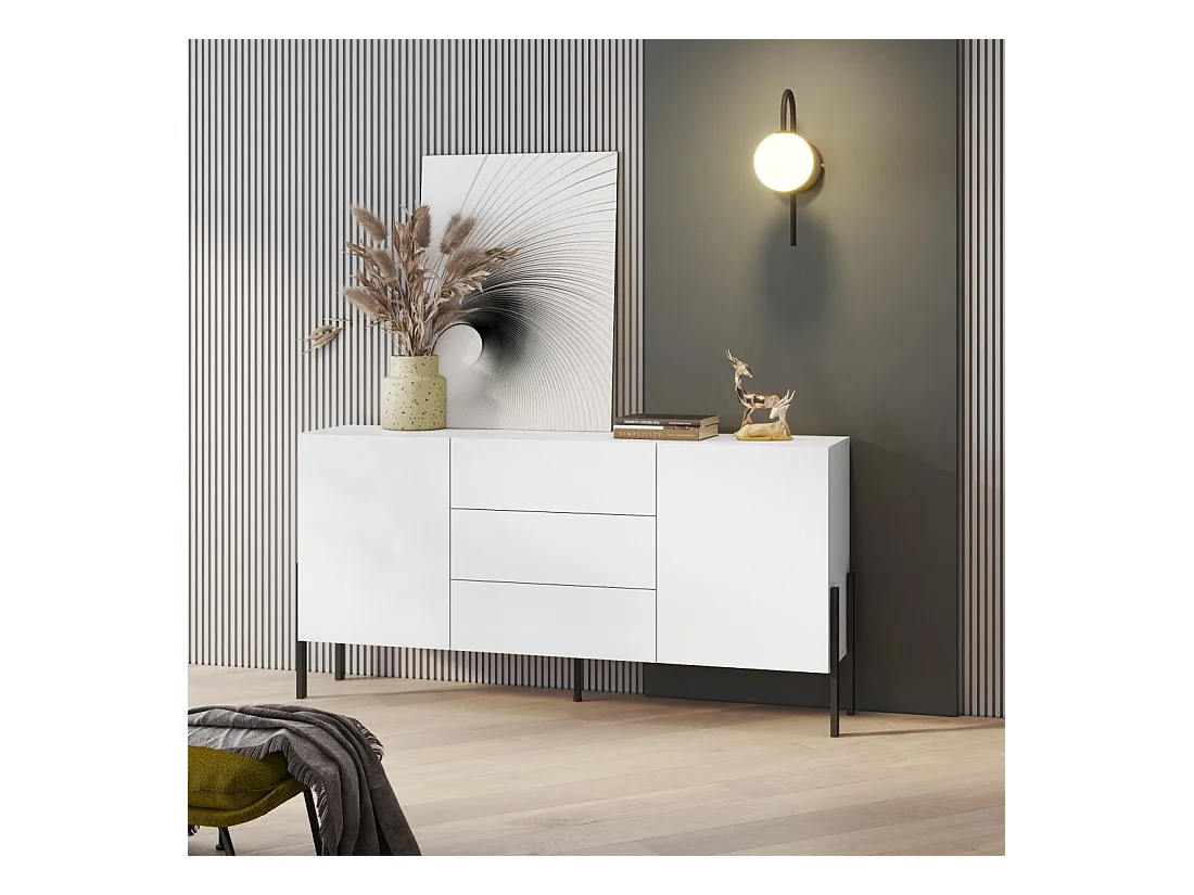 Buffet 165cm coleção KOBEE com 3 portas e 2 gavetas. Cor branca e carvalho.