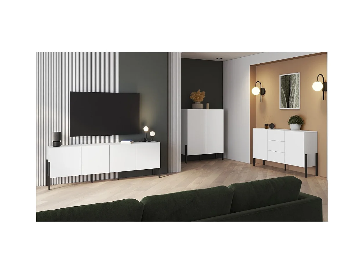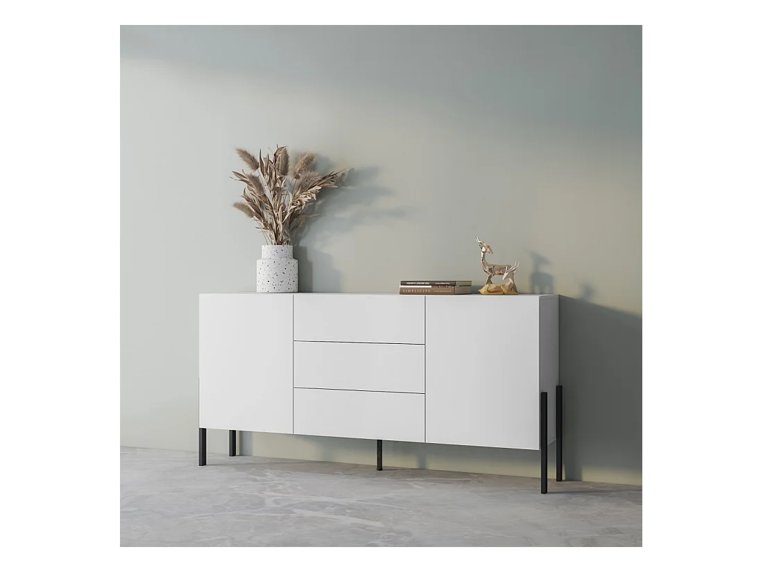 Buffet design coleção SALMA - 2 portas & 3 gavetas – Branco super mate & preto mate