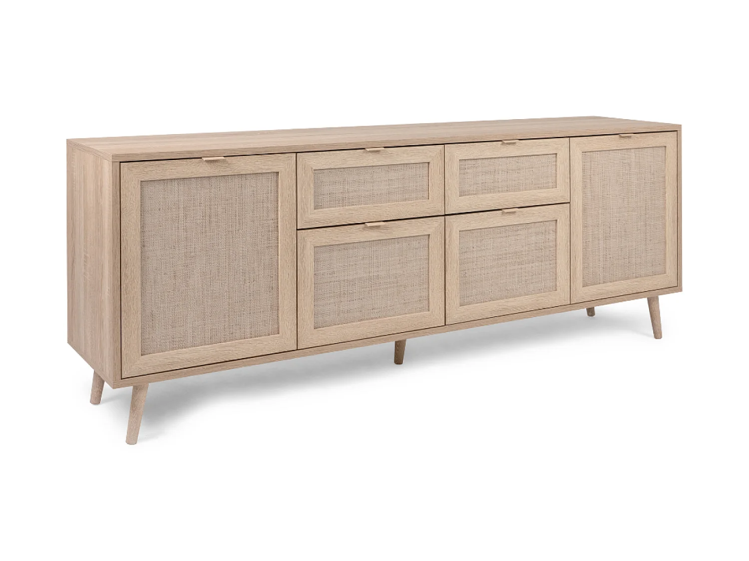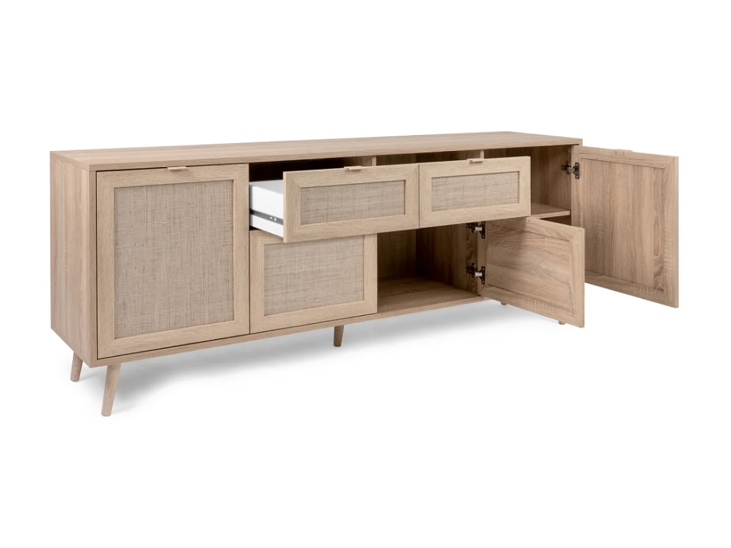 Buffet TIVAT em Carvalho Sonoma com Cannage, 4 Portas, 2 Gavetas - Estilo Industrial
