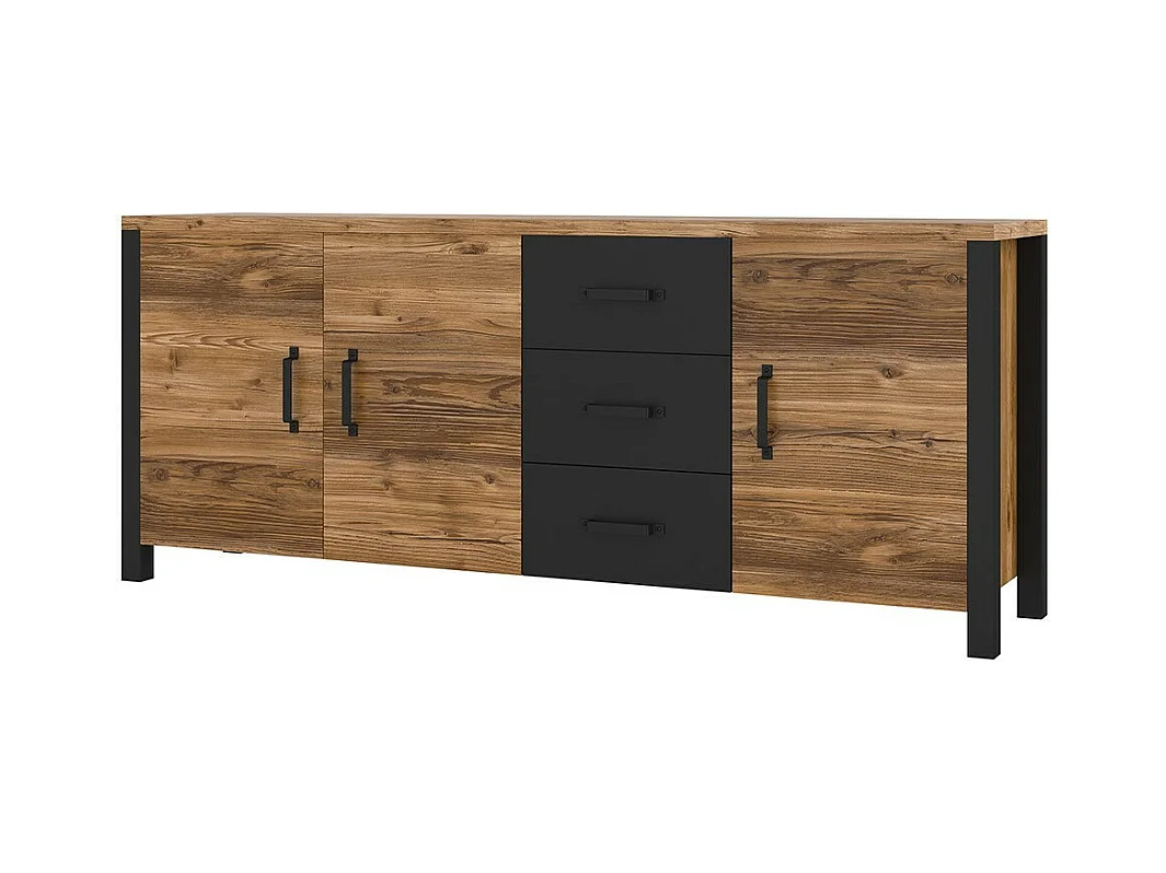 Buffet XL 190cm coleção DARWIN. Cor pinheiro e preto. 3 portas e 3 gavetas.