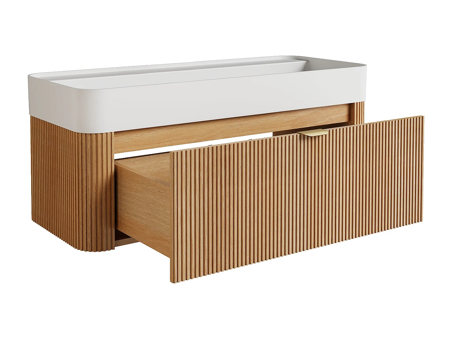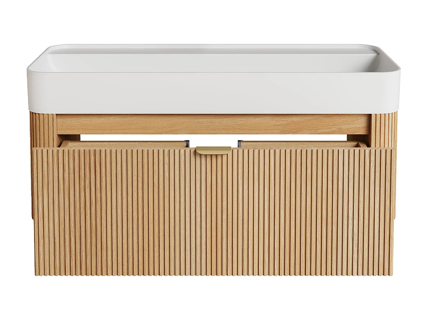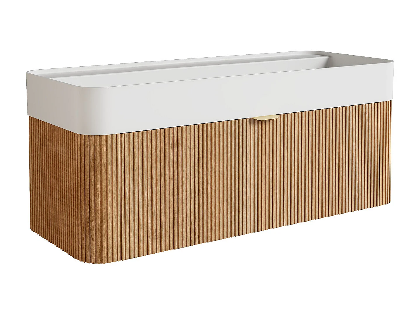 Móvel de casa de banho suspenso em madeira de freixo estriada com lavatório duplo para encastrar em resina branco mate - Natural claro - 100 cm - BULMAS