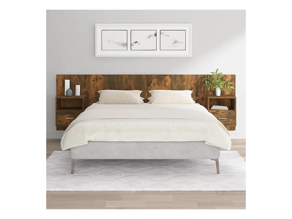 Cabeceira com armários Carvalho fumado Madeira de engenharia