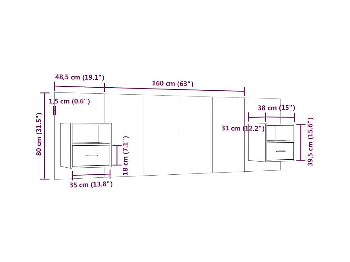 Armário de cabeceira 160x19x103,5 cm cor carvalho sonoma PT313639