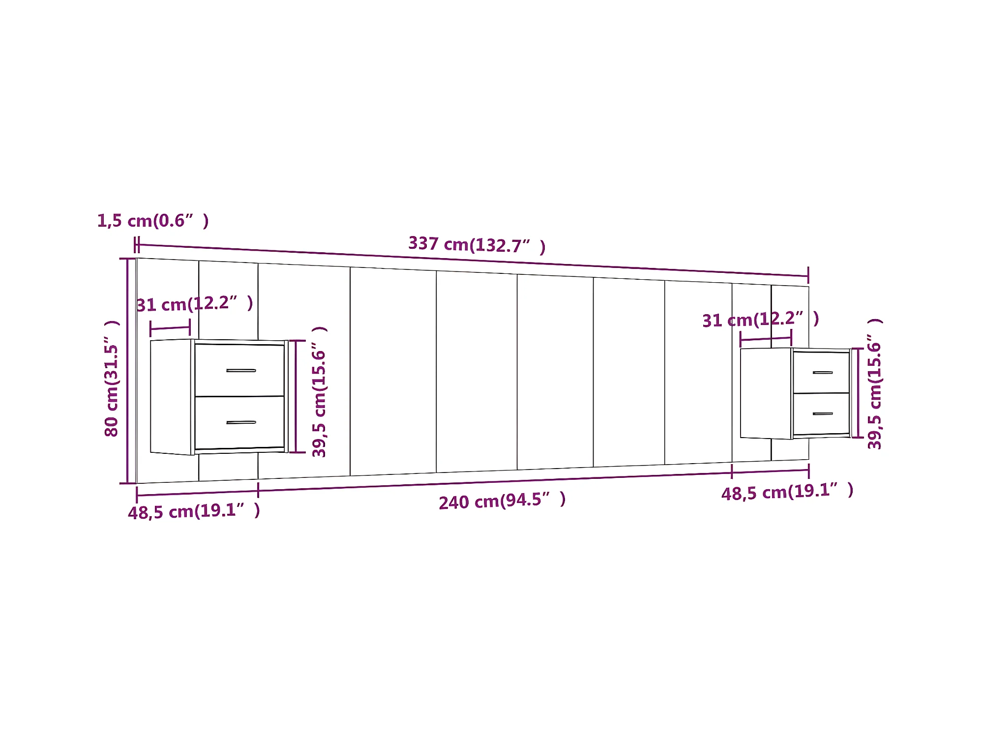 Cabeceira cama + armários madeira processada sonoma cinzento