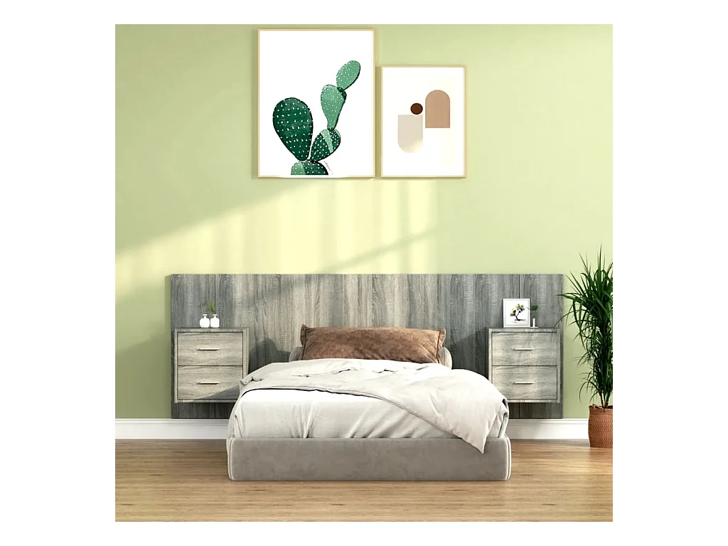 Cabeceira cama + armários madeira processada sonoma cinzento PT962214