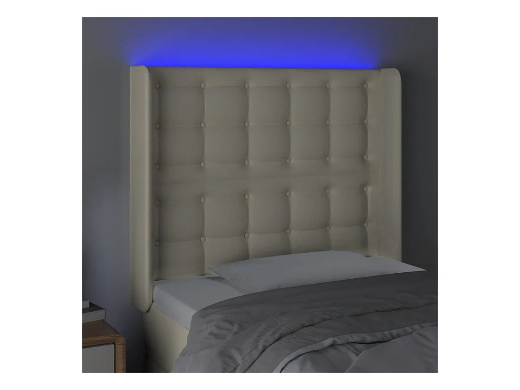 Cabeceira cama c/ LED 100x5x118/128 cm couro artificial crème