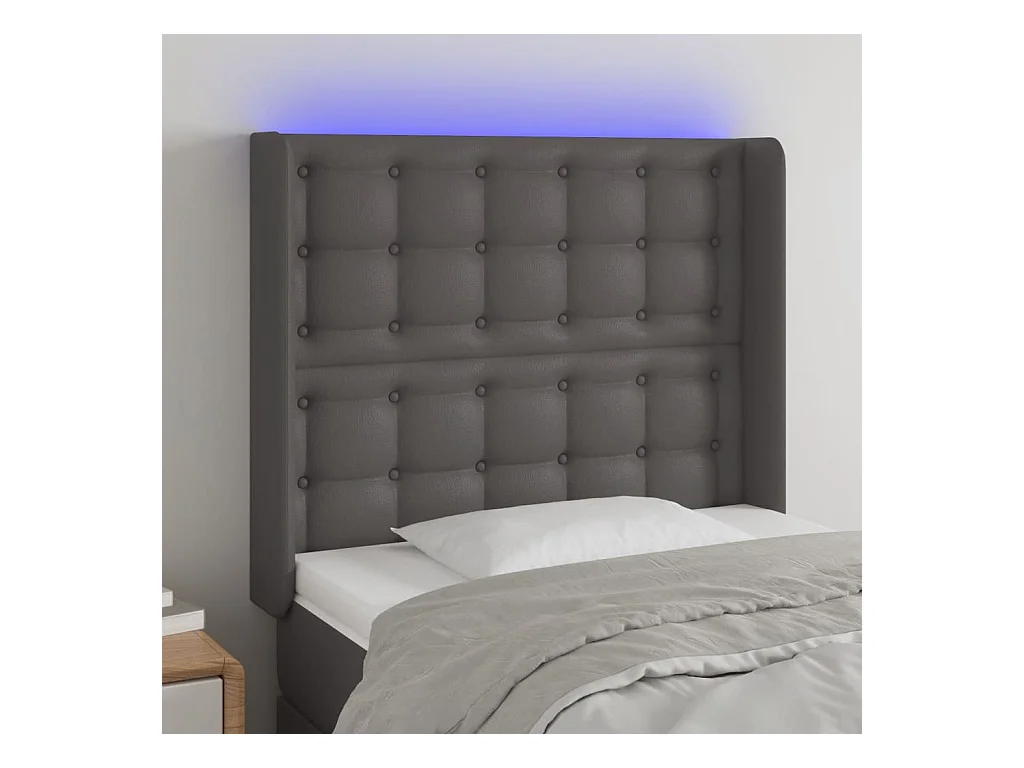 Cabeceira cama c/ LED 100x5x78/88cm couro artificial cinzento