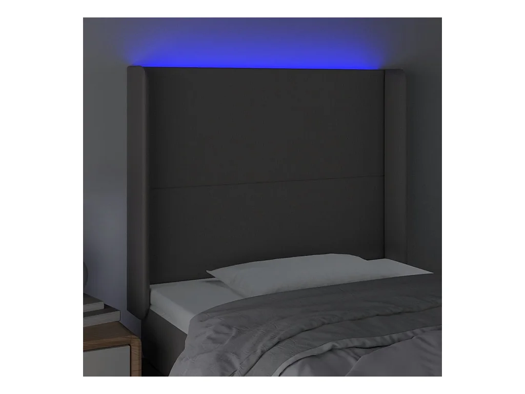 Cabeceira cama c/ LED 83x16x118/128cm couro artificial cinzento