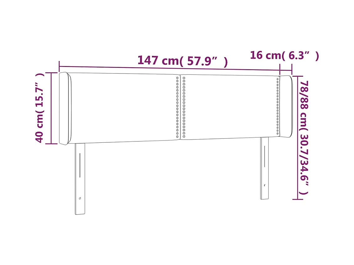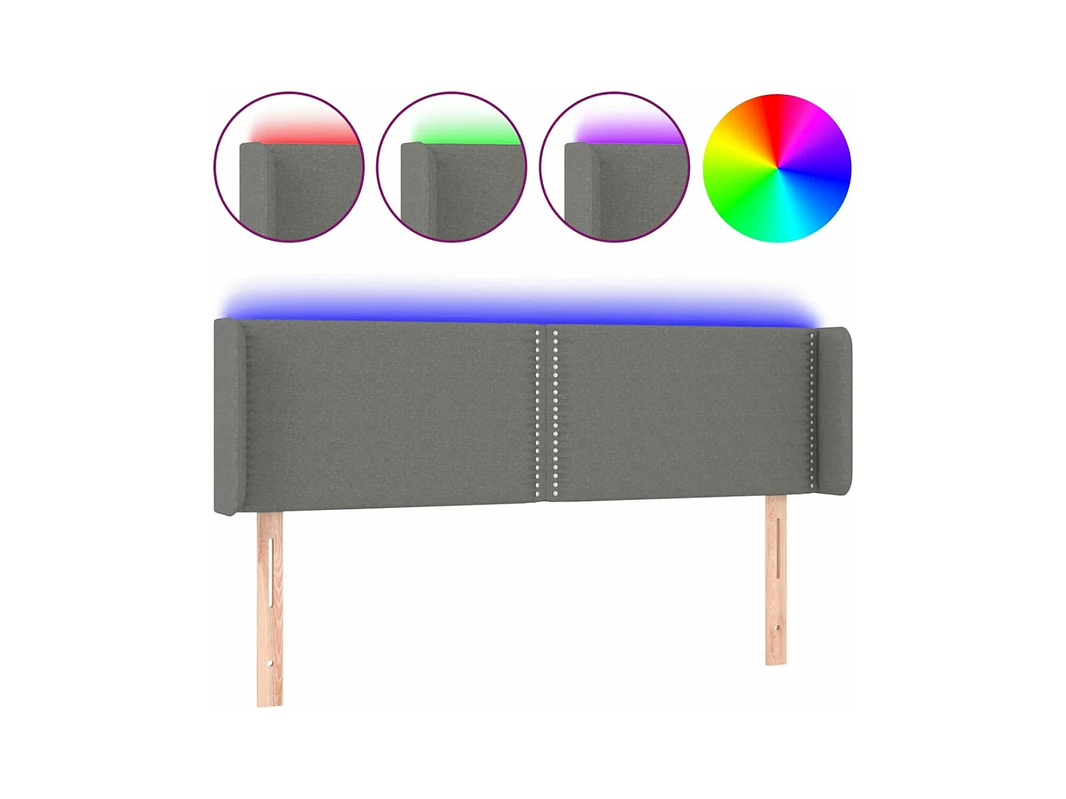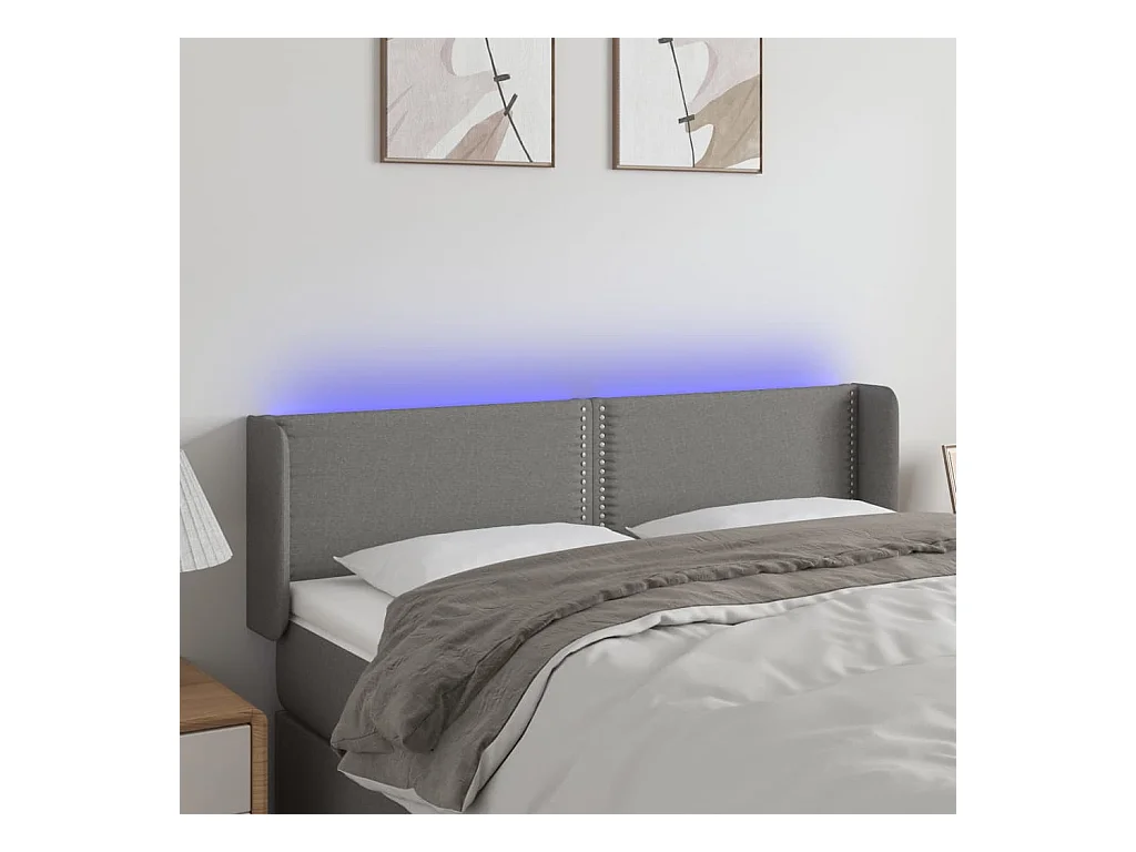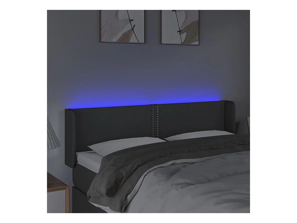Cabeceira cama c/ luzes LED tecido 147x16x78/88cm cinza-escuro