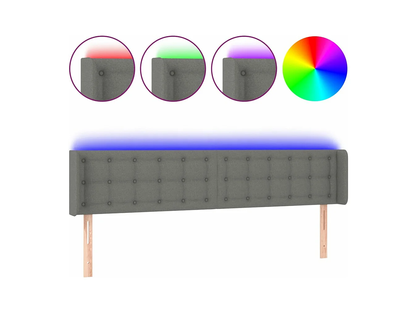 Cabeceira cama c/ luzes LED tecido 163x16x78/88cm cinza-escuro