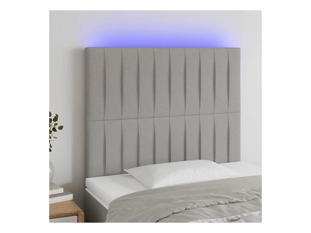 Cabeceira de cama c/ luzes LED tecido 80x5x78/88 cm cinza-claro