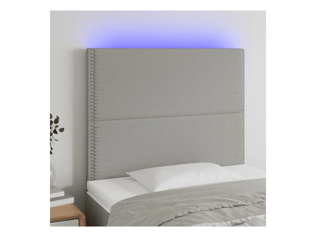 Cabeceira cama c/ luzes LED tecido 90x5x118/128cm cinza-claro