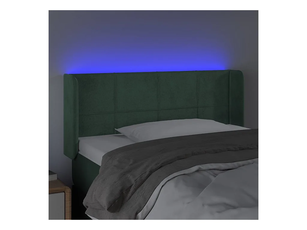 Cabeceira cama c/ luzes LED veludo 93x16x78/88 cm verde-escuro