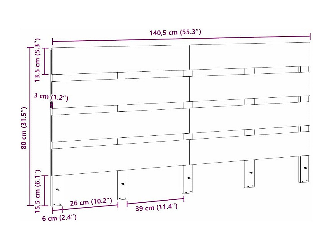 • Tamanho da cabeceira: 140.5 x 3 x 80 cm (L x P x A)