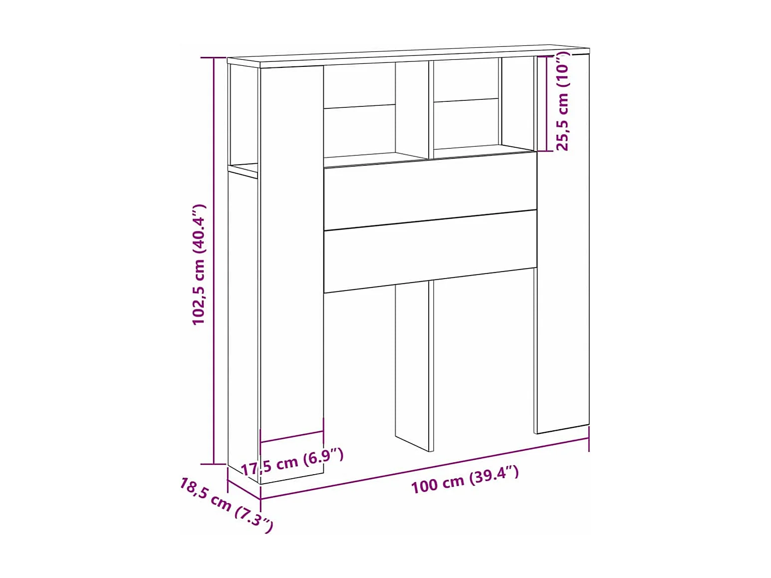 Cabeceira com Armário Carvalho preto 100 x 19 x 104,5 cm
