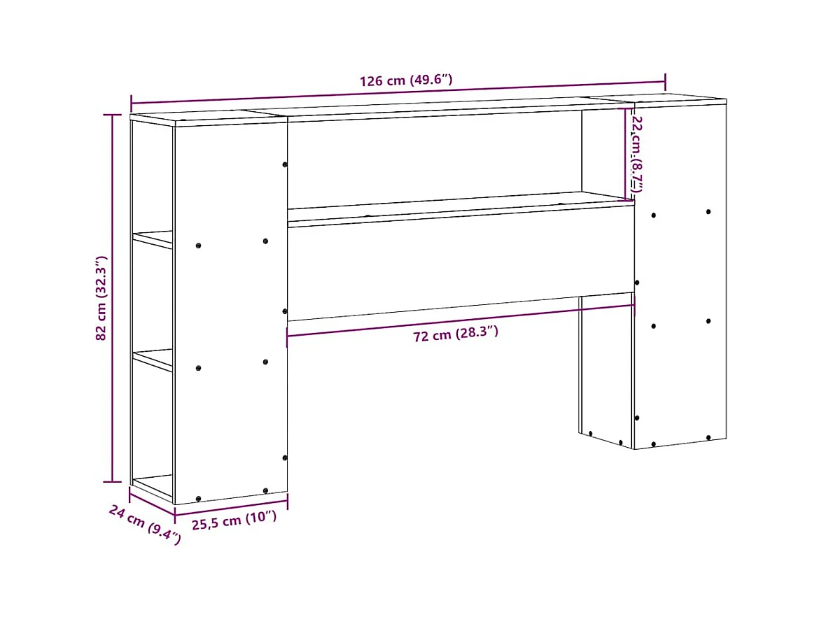 Cabeceira com prateleiras 120 cm madeira de pinho maciça