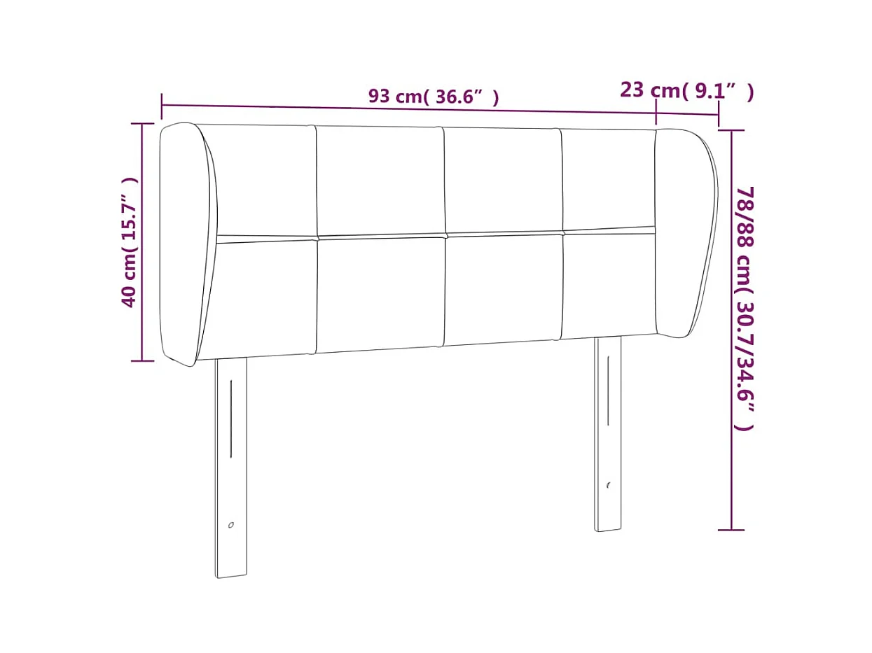 Cabeceira com orelhas Tecido Preto 93x23x78/88 cm
