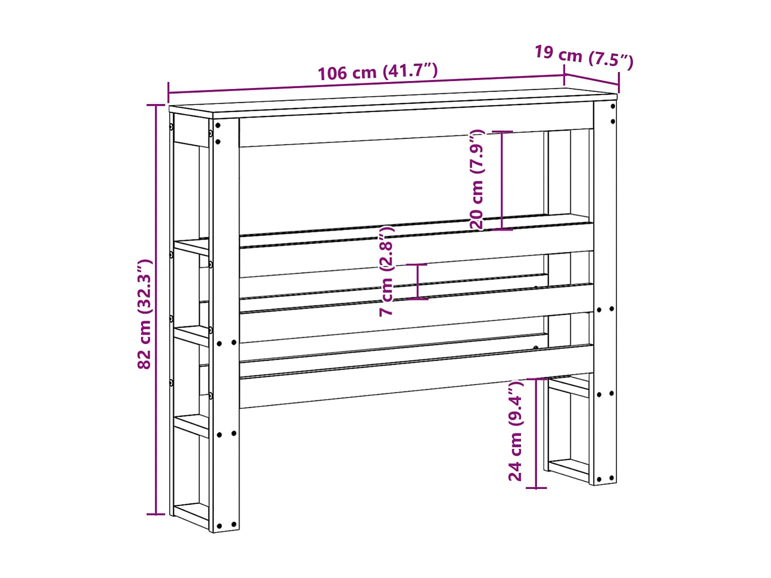 Cabeceira com arrumação 100 cm madeira de pinho maciça
