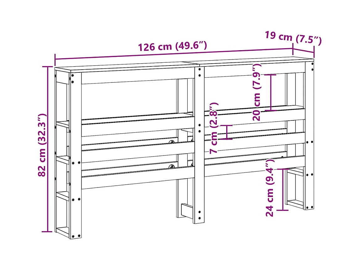 Cabeceira com arrumação 120 cm madeira de pinho maciça