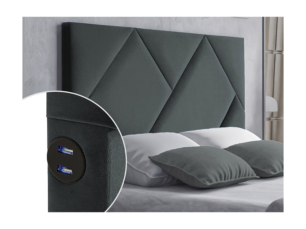 Cabeceira de cama 160 cm com portas USB em Veludo Cinza - KANDRA