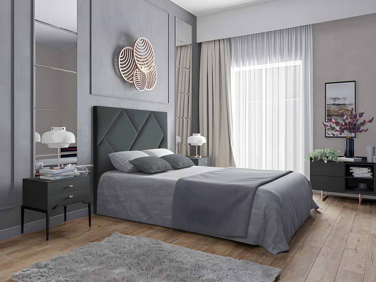 Com o seu estilo vanguardista e os seus acabamentos em veludo, a cabeceira de cama KANDRA criará um ambiente sedutor no seu quarto.