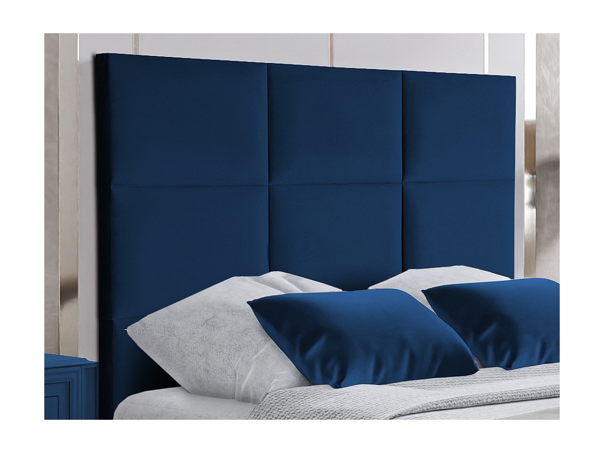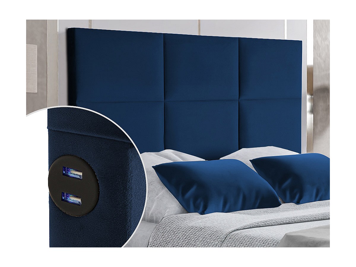 Cabeceira de cama acolchoada 140 cm com portas USB em Veludo Azul-escuro - KARY