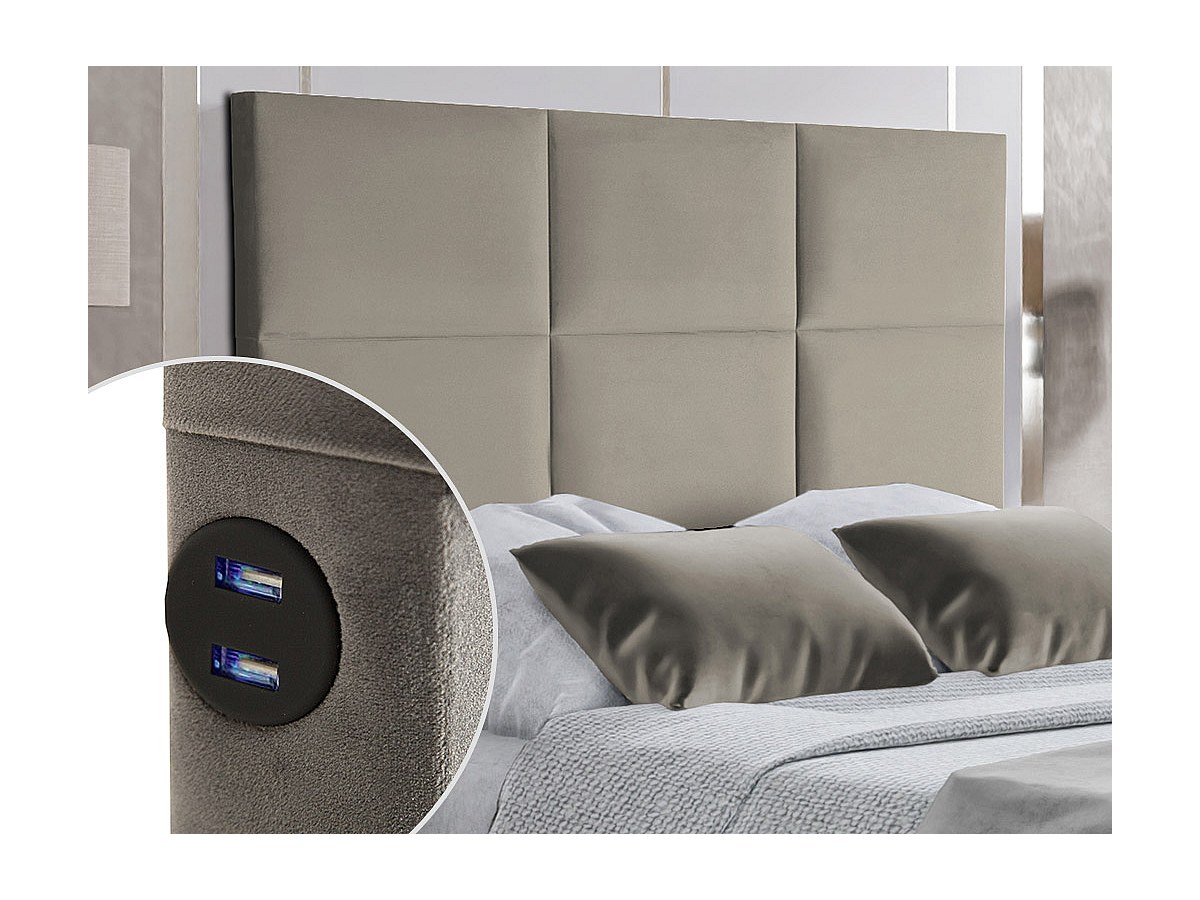 Cabeceira de cama acolchoada 140 cm com portas USB em Veludo Bege - KARY