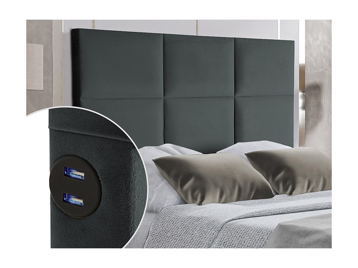 Cabeceira de cama acolchoada 140 cm com portas USB em Veludo Cinza - KARY