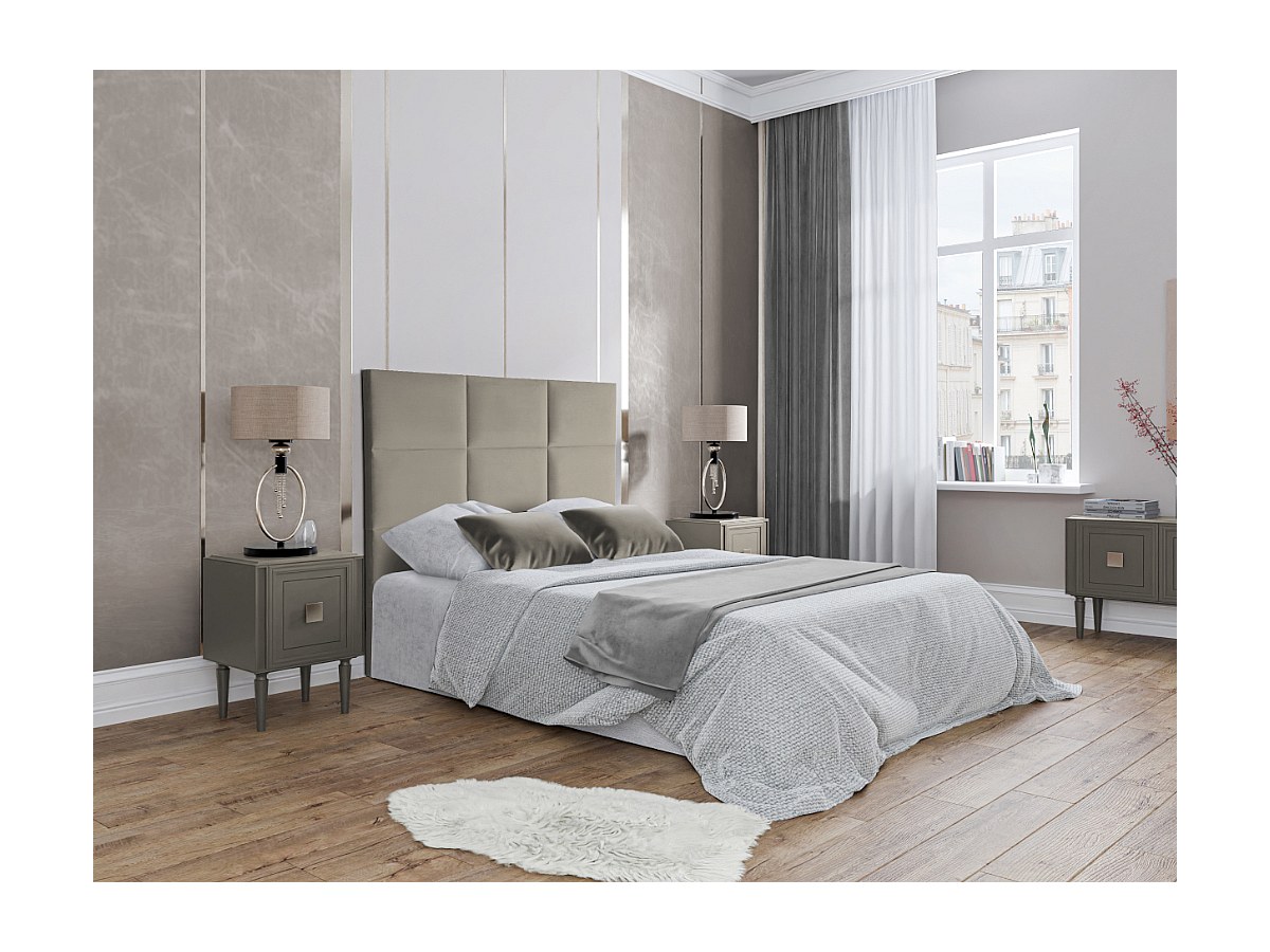 Cabeceira de cama acolchoada 140 cm em Veludo Bege - KARY