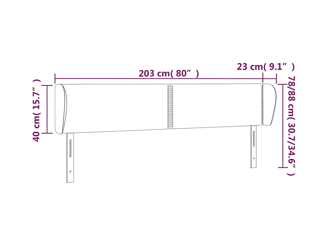 Cabeceira de cama c/ abas tecido 203x23x78/88 cm preto