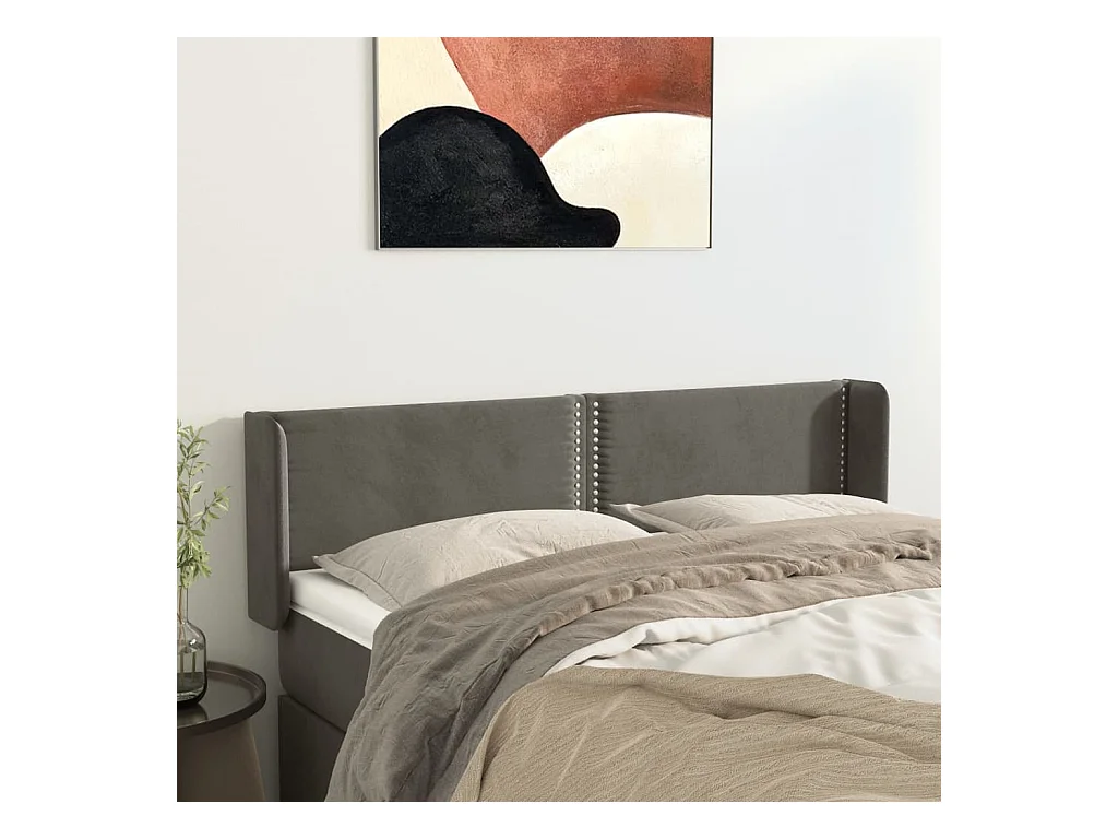 Cabeceira de cama c/ abas veludo 147x16x78/88cm cinzento-escuro PT934264